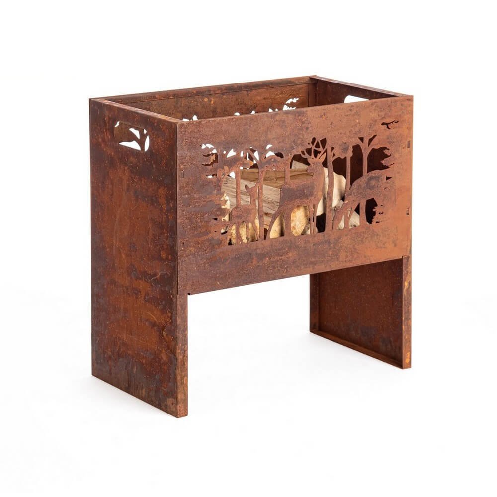 Il Braciere Acciaio Ruggine Rustico da Giardino 50×30 – BELLEZZA è molto più di un semplice accessorio da esterni: è un elemento d’arredo che unisce funzionalità e stile con raffinata naturalezza. Realizzato in acciaio resistente alle alte temperature, questo braciere presenta un’elegante finitura in ruggine autentica, frutto di un processo di ossidazione naturale che evolve nel tempo esaltando il suo fascino rustico. Le pareti sono finemente traforate da un’incantevole scena boschiva con cervi tra gli alberi, un dettaglio che arricchisce visivamente la struttura e che, illuminato dalla fiamma, crea giochi di luce evocativi e suggestivi. Con dimensioni compatte (50x30x50 cm), si adatta perfettamente a giardini, terrazze o angoli di relax all’aperto, diventando il cuore pulsante di serate conviviali. Lo stile del Braciere Acciaio Ruggine Rustico da Giardino 50×30 – BELLEZZA parla di autenticità e ritorno alla natura, sposandosi splendidamente con arredamenti country, vintage o industriali. Ideale per chi desidera riscaldare l’ambiente con un tocco di poesia visiva, questo braciere trasforma ogni momento all’aperto in un’esperienza accogliente e scenografica.