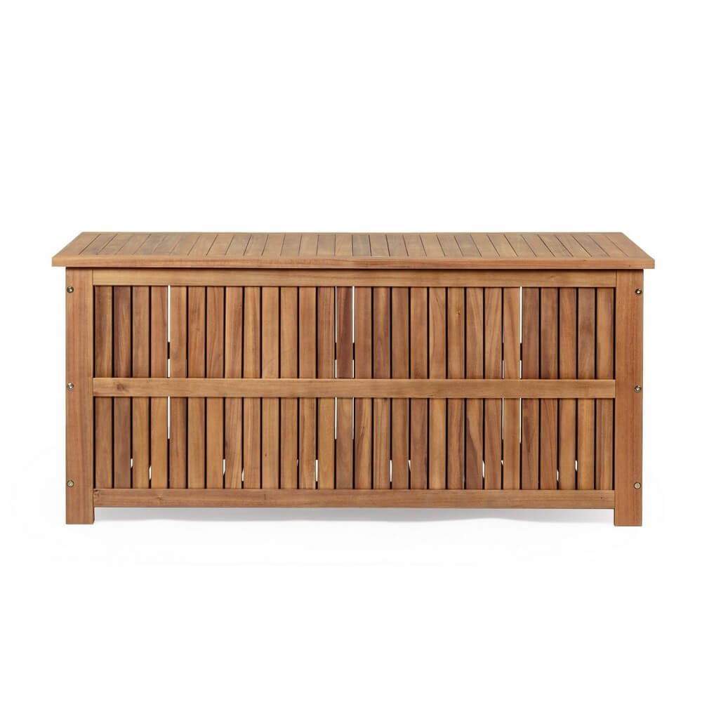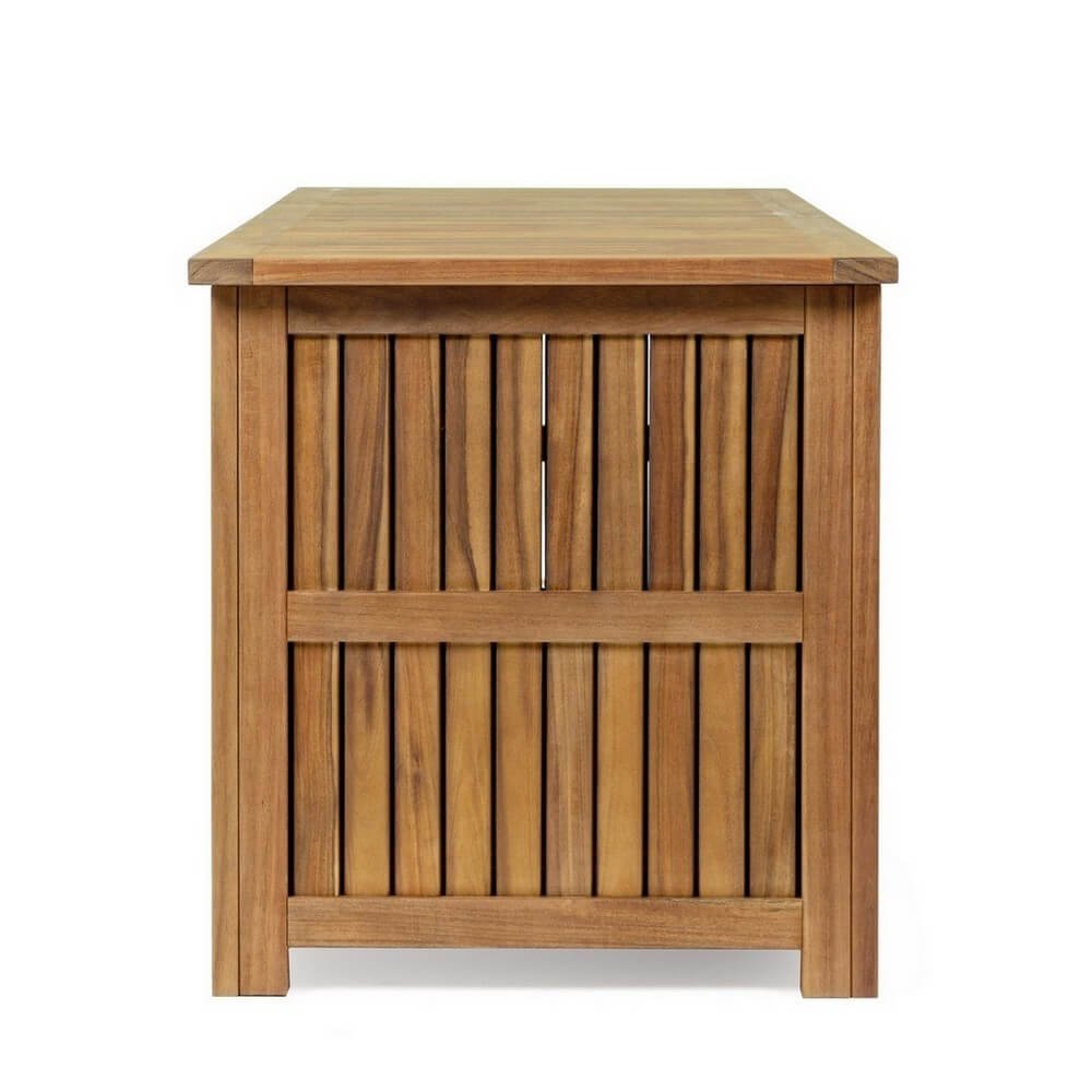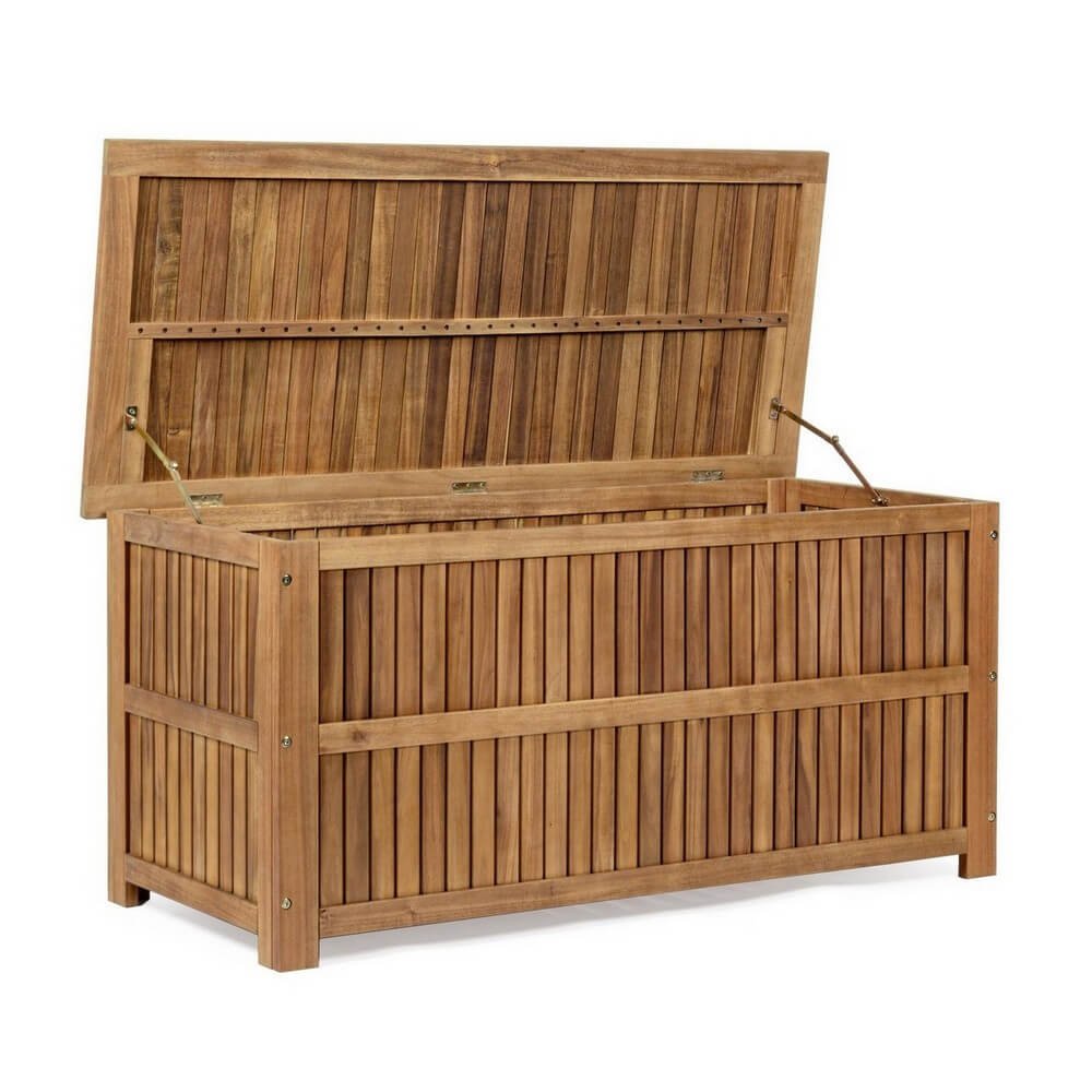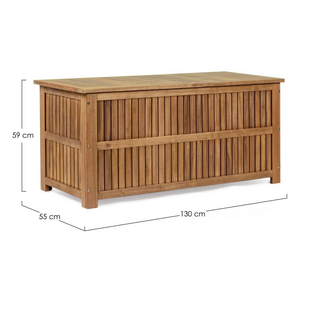 Il Baule Porta Cuscini Legno Marrone Rustico da Esterno – SERENITY è la soluzione ideale per chi desidera unire funzionalità e stile nell’arredo da giardino. Realizzato in pregiato legno di acacia con finitura ad olio, questo complemento da esterno si distingue per il suo look caldo e naturale, perfettamente abbinabile a spazi outdoor in stile rustico o country chic. Le doghe verticali che decorano i pannelli conferiscono un tocco artigianale e curato, accentuando il fascino autentico del materiale. Robusto e resistente agli agenti esterni grazie alla ferramenta in acciaio galvanizzato, è pensato per offrire un ampio spazio contenitivo mantenendo ordine ed eleganza su terrazze, verande o giardini. Le dimensioni generose (130x55x59 cm) permettono di conservare facilmente cuscini, tessili da esterno o accessori stagionali, mantenendoli al riparo e sempre a portata di mano. Il Baule SERENITY dà il meglio di sé in ambienti rilassati, dove ogni dettaglio contribuisce a creare un’atmosfera accogliente e ben organizzata, valorizzando l’esperienza di vivere all’aperto con gusto e praticità.