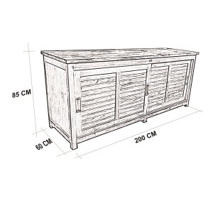 Il *Mobile da Giardino in Legno Teak cm 200x60x90 – JULIAN* è un complemento raffinato per gli spazi esterni, pensato per unire estetica naturale e funzionalità. Realizzato in legno teak massiccio di classe A, materiale noto per la straordinaria resistenza agli agenti atmosferici e per la sua bellezza senza tempo, questo mobile da giardino si distingue per la robustezza e il calore del suo colore marrone naturale. Le due ante scorrevoli, arricchite da maniglie incassate, rivelano uno spazio interno ben organizzato con un pratico ripiano, ideale per riporre stoviglie, utensili da giardino o accessori per la tavola. Completano la struttura eleganti vani laterali a giorno, che aggiungono ritmo visivo e ulteriore capienza. La ferramenta in lega di metallo e ottone valorizza l’autenticità artigianale del prodotto, rendendolo perfetto per ambientazioni in stile rustico, classico o coloniale. Il design lineare e solido del Mobile JULIAN lo rende la scelta ideale per arricchire verande, patii o terrazze con un tocco di naturale eleganza, offrendo al contempo un’esperienza d’uso funzionale e accogliente durante i momenti di convivialità all’aperto.