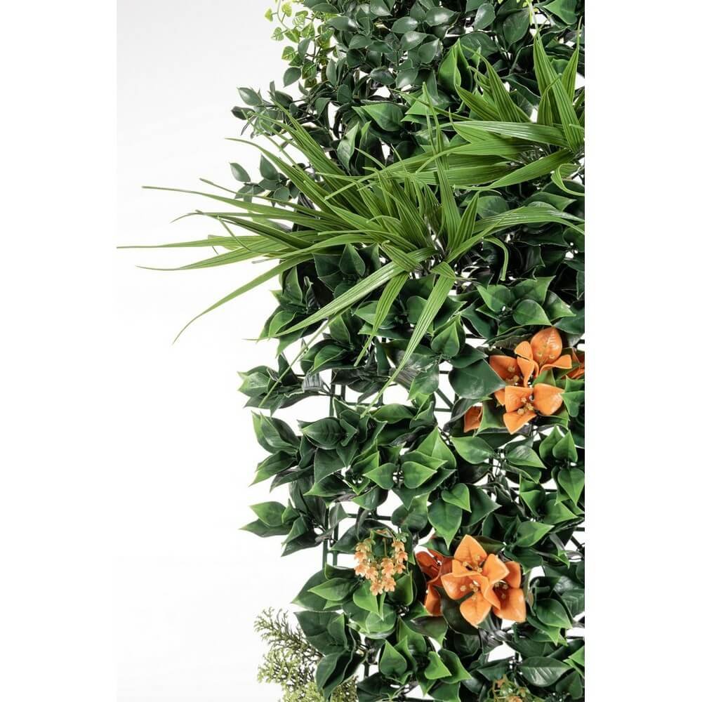 La Parete Sintetica Resina Verde da Interno Ø100 cm – NOVARA è una raffinata soluzione decorativa pensata per portare un tocco di natura in ogni ambiente indoor, senza i vincoli della manutenzione delle piante vere. Realizzata in resina di polietilene di alta qualità, resistente ai raggi solari, questa composizione ecologica si distingue per la sua ricchezza visiva, che unisce una varietà di fogliame artificiale in diverse nuances di verde con inserti floreali nei toni del giallo e dell’arancio, creando un effetto giungla urbana elegante e vivace. Lo stile realistico e tridimensionale dona profondità e movimento alla parete, rendendola perfetta per valorizzare spazi interni come soggiorni, uffici, ingressi o ambienti commerciali dal design moderno o naturale. La struttura modulare consente un’installazione semplice e immediata, trasformando una parete anonima in un sofisticato angolo verde completamente privo di manutenzione. La Parete Sintetica Resina Verde da Interno Ø100 cm – NOVARA si esprime al meglio in contesti dove si desidera creare un’atmosfera rilassante e accogliente, combinando comfort visivo con uno stile sempreverde.