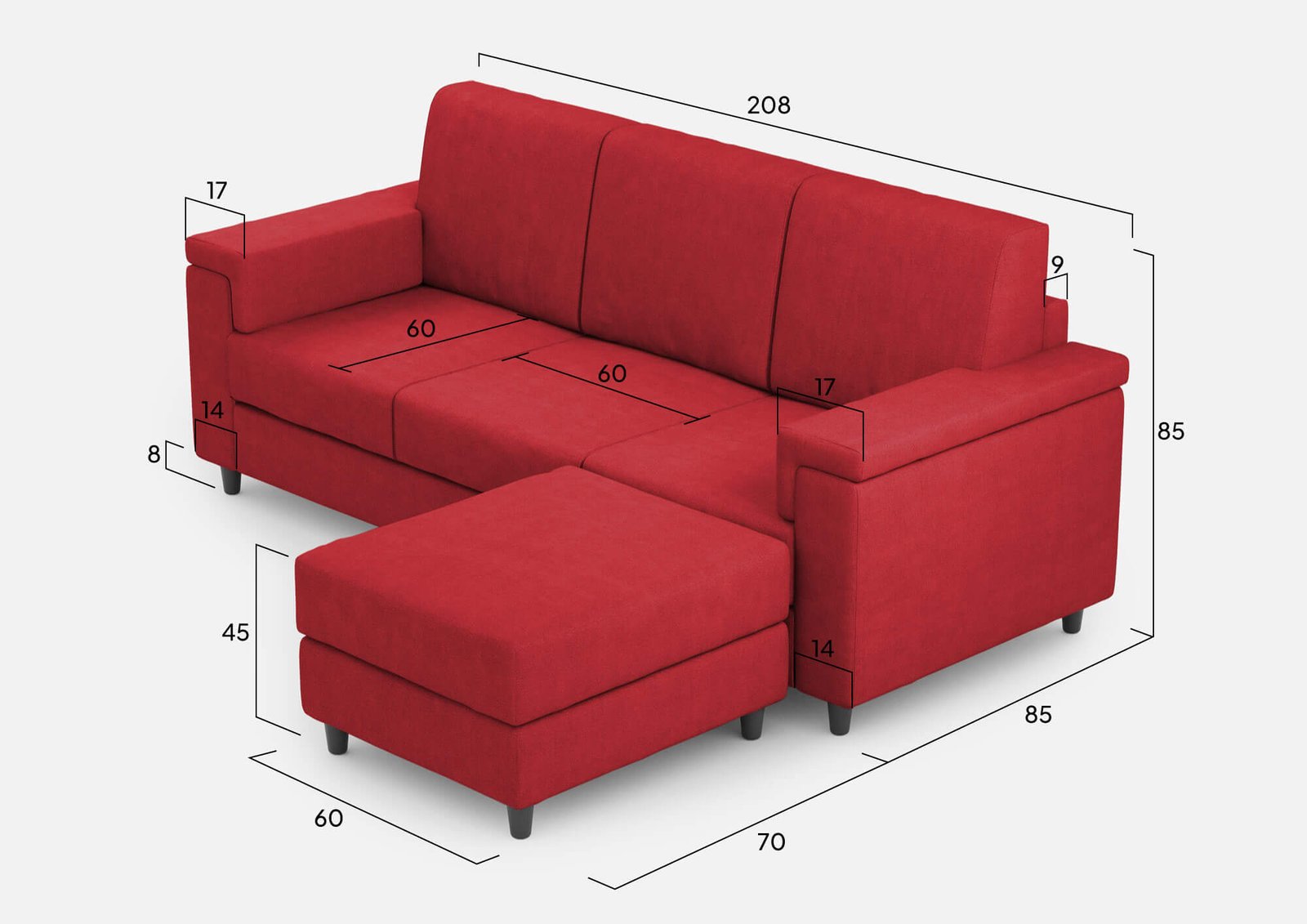 Il Divano 3 posti con Pouf Moderno in Tessuto – MARRAK è ideale per arredare soggiorni e salotti con stile, unisce comfort, capienza e versatilità in un’unica soluzione.