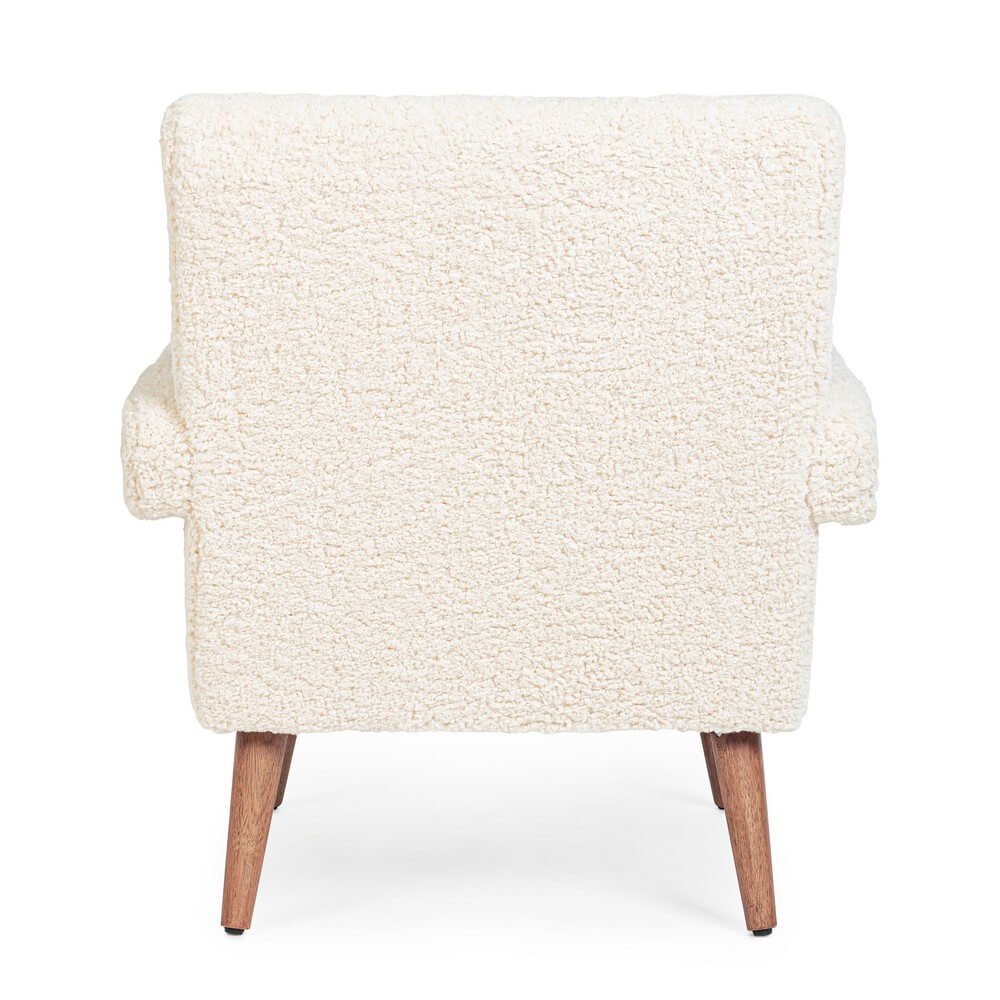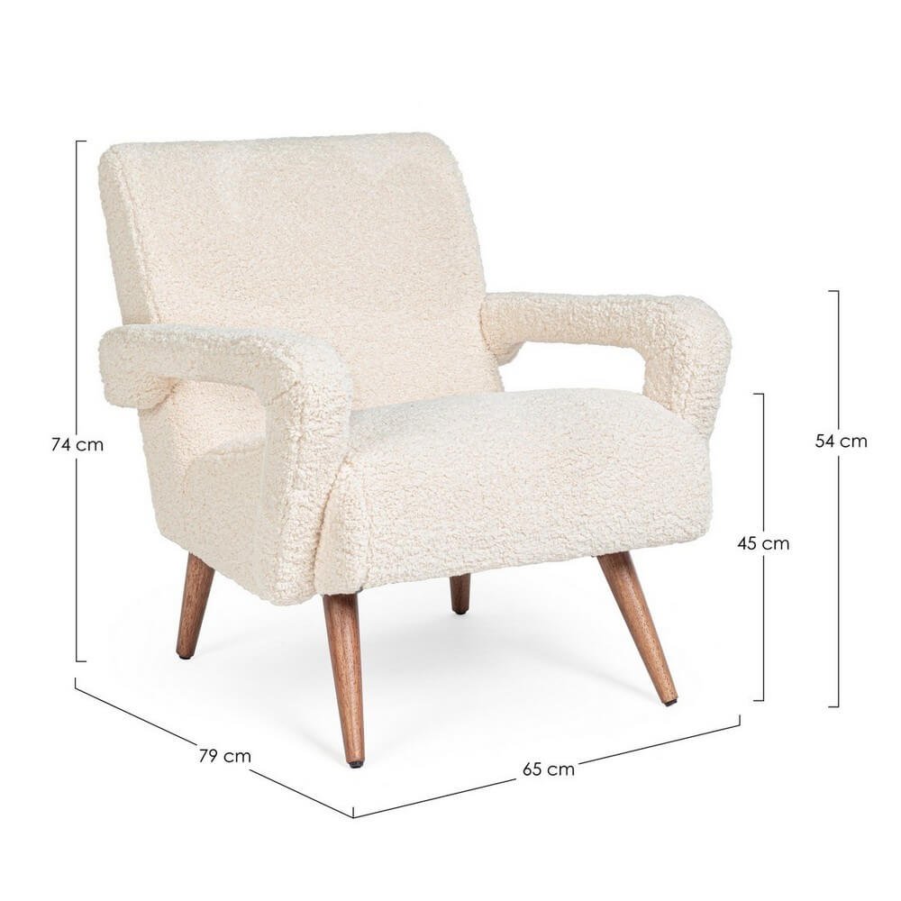 La Poltrona Bouclé Bianca Scandinava da Interno – YASMIN è l’emblema dello stile nordico contemporaneo, pensata per chi desidera combinare il comfort avvolgente con un design raffinato e minimalista. Il suo rivestimento in poliestere effetto lana bouclé, soffice e dall’aspetto caldo e materico, valorizza qualsiasi ambiente domestico, donando un tocco accogliente e moderno al soggiorno, alla camera da letto o a un raffinato angolo lettura. La struttura interna in legno di pino e compensato garantisce stabilità e solidità, mentre l’imbottitura in schiuma poliuretanica ad alta densità (24 kg/m3) assicura un comfort prolungato. Le gambe in legno di rubberwood con piedini regolabili in plastica completano il profilo elegante e leggermente rétro, esaltando l’armonia delle forme e il contrasto naturale tra il bianco del tessuto e il tono caldo del legno. La poltrona YASMIN non è sfoderabile e viene consegnata con gambe da assemblare, perfetta per chi cerca una soluzione d’arredo distintiva, funzionale e di tendenza. Ideale per creare atmosfere rilassate e sofisticate, trasmette da subito una sensazione di benessere e calore nelle abitazioni più curate.