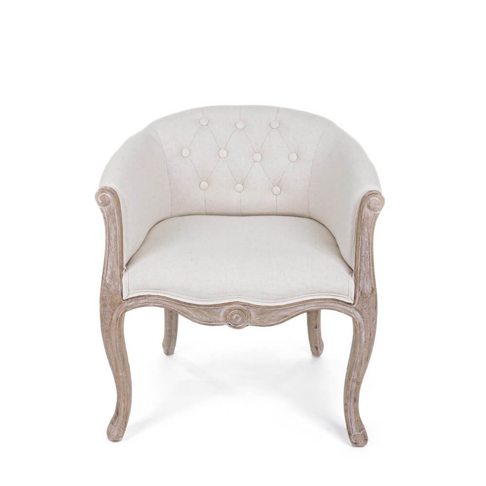Il Set 2 Poltrone Tessuto Beige Legno Marrone Rustico da Interno – MAXWELL è l’emblema dell’eleganza senza tempo, perfetto per arredare con stile zone living, camere da letto o ingressi dalle atmosfere sofisticate. La struttura in pregiato rubber wood rifinita in marrone rustico si distingue per le linee morbide e le gambe sagomate con dettagli scolpiti, richiamando lo stile classico francese con un fascino naturale e autentico. Il rivestimento in tessuto beige, composto da una raffinata miscela di poliestere, cotone e lino, dona alla seduta un’impronta calda e accogliente, mentre lo schienale avvolgente con lavorazione capitonné aggiunge un tocco distintivo di charme retrò. La cura artigianale nei dettagli e l’equilibrio tra comfort e design rendono il set MAXWELL ideale per ambienti interni dallo stile rustico-chic, vintage o country elegante. Ogni poltrona invita al relax grazie alla seduta ampia e comoda, valorizzando qualsiasi spazio con la sua presenza scenica ma discreta. Il set esprime al meglio il suo valore in contesti domestici di gusto ricercato, dove ogni elemento d’arredo concorre a creare un’atmosfera intima, armoniosa e di grande personalità.