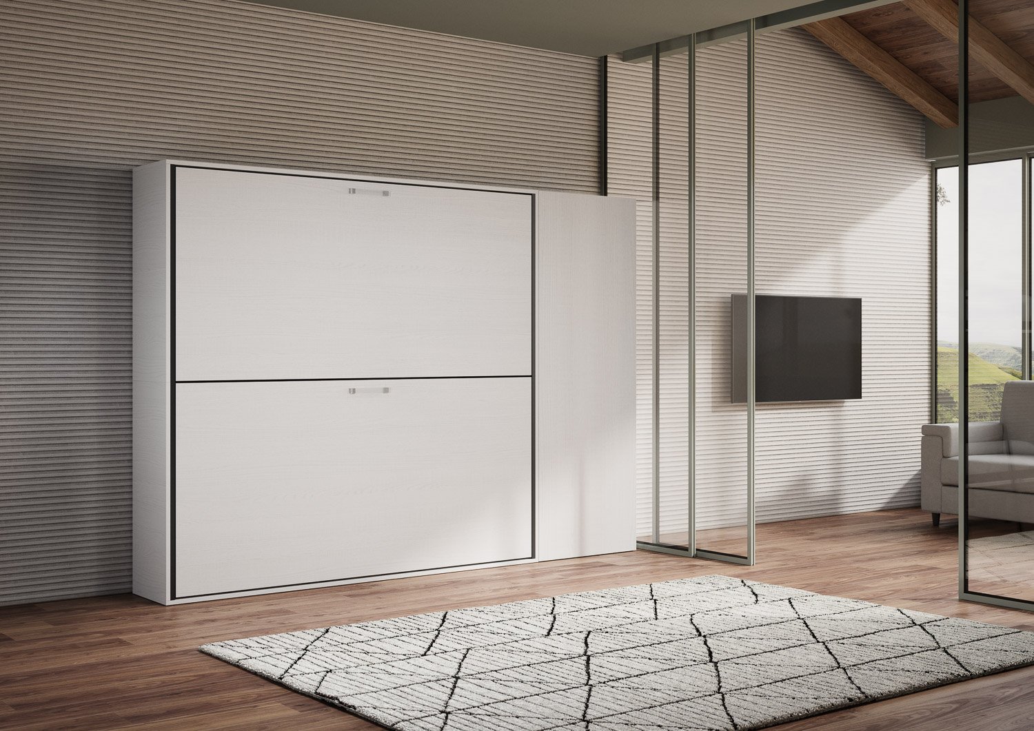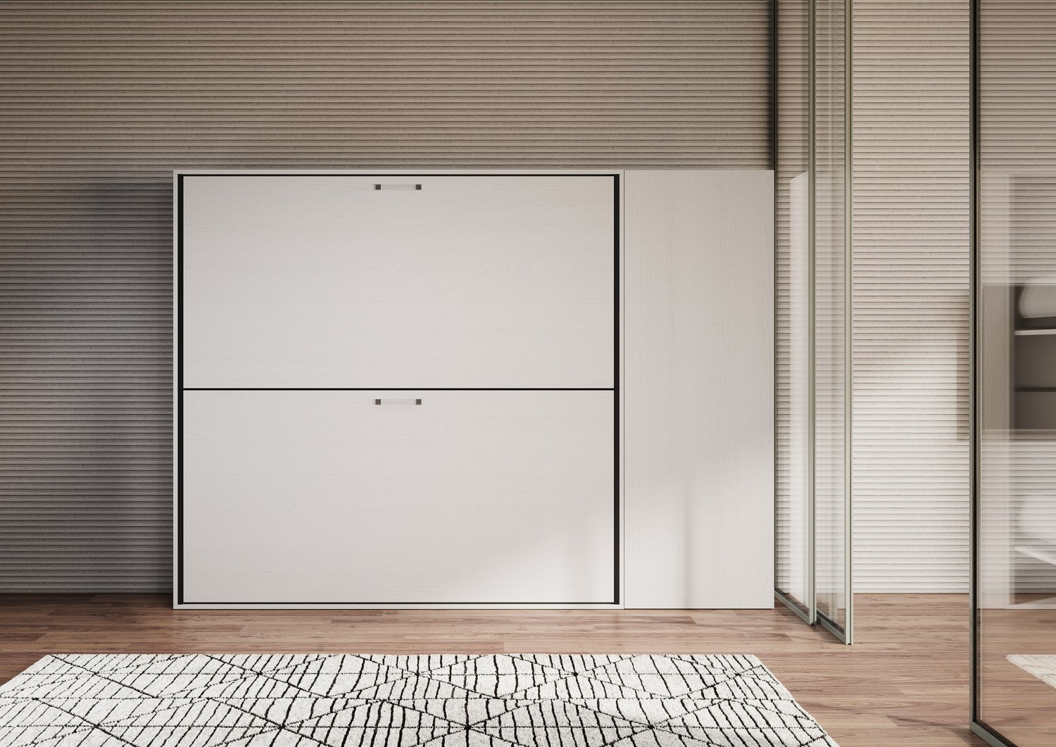 Kando H รจ un letto doppio a scomparsa con un piccolo ma capiente armadio a unโanta. Si tratta di una soluzione originale e funzionale, che permette di ottimizzare lo spazio disponibile, occupando solo 39,2 cm di profonditร quando รจ chiuso. Kando H offre il comfort e il relax di due letti da una piazza, con il suo design versatile e moderno si adatta a qualsiasi stile di arredamento. ร ideale per chi vive in un monolocale o in un ambiente con spazi limitati e vuole avere piรน superficie libera durante il giorno.