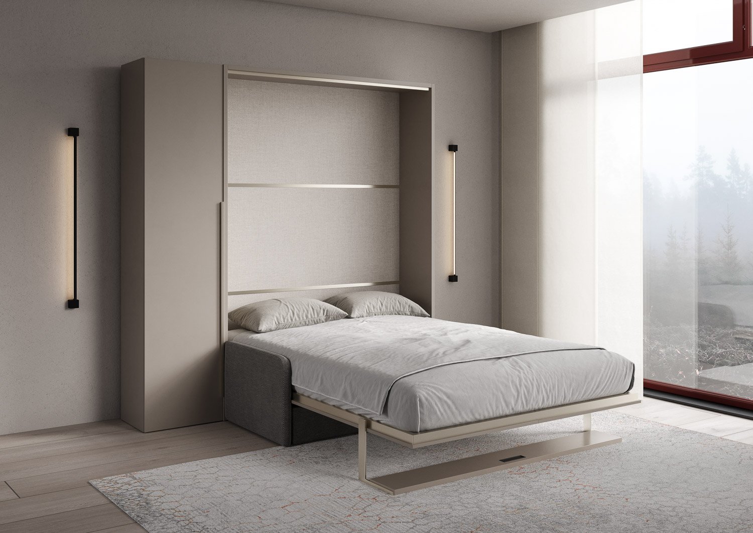 Il letto a scomparsa verticale matrimoniale Versia Sofà, con divano e mensola integrati, reinventa il concetto di spazio. Eleganza, funzionalità e design si fondono in Versia Sofà, il letto a scomparsa verticale matrimoniale che trasforma la zona giorno in zona notte in poche semplici mosse. Composizione proposta con un pratico e capiente armadio 1 anta, posizionabile a sinistra del letto, che permette di riporre al proprio interno tutto il necessario, per una camera da letto sempre in ordine. Realizzato con materiali di alta qualità, Versia è la soluzione ideale per chi desidera ottimizzare lo spazio senza rinunciare al design. Il meccanismo di apertura e chiusura, silenzioso e fluido, è progettato per garantire la massima sicurezza e facilità d’uso. Con Versia Sofà, il tuo riposo sarà un’esperienza unica e indimenticabile.