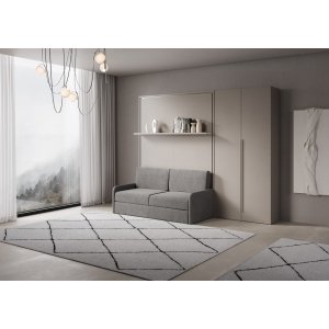 Il letto a scomparsa verticale francese 140 Versia Sofà, con divano e mensola integrati, reinventa il concetto di spazio. Eleganza, funzionalità e design si fondono in Versia Sofà, il letto a scomparsa verticale francese 140 che trasforma la zona giorno in zona notte in poche semplici mosse. Composizione proposta con un pratico e capiente armadio due ante, posizionabile a destra del letto, che permette di riporre al proprio interno tutto il necessario, per una camera da letto sempre in ordine. Realizzato con materiali di alta qualità, Versia è la soluzione ideale per chi desidera ottimizzare lo spazio senza rinunciare al design. Il meccanismo di apertura e chiusura, silenzioso e fluido, è progettato per garantire la massima sicurezza e facilità d’uso. Con Versia Sofà, il tuo riposo sarà un’esperienza unica e indimenticabile.