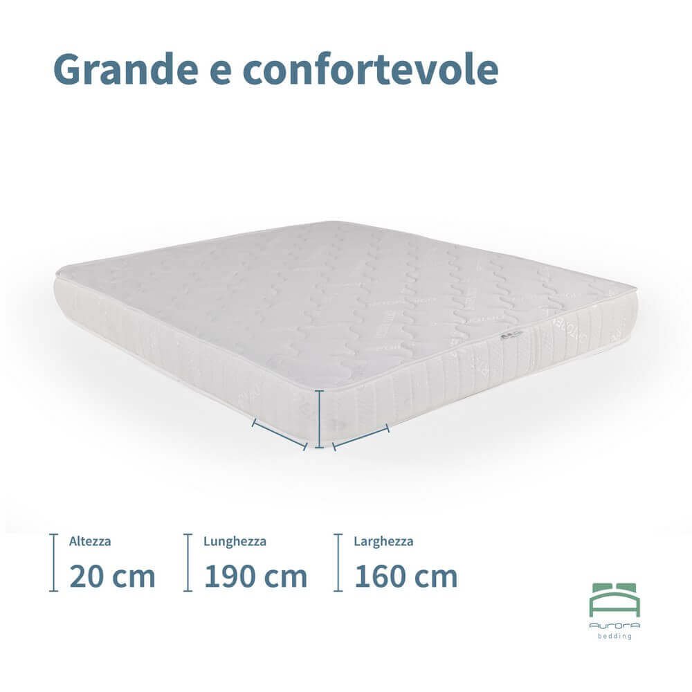 Il Materasso matrimoniale ortopedico anallergico 160×190 – NUBE è progettato per offrire un equilibrio perfetto tra sostegno e comfort, ideale per chi desidera un riposo rigenerante senza compromessi. Con dimensioni generose di 160×190 cm e uno spessore di 20 cm, garantisce una superficie ampia e accogliente, perfetta per sonni tranquilli e ininterrotti. Il suo supporto ortopedico favorisce un corretto allineamento della colonna vertebrale, contribuendo a ridurre tensioni muscolari e fastidi posturali. La struttura anallergica lo rende adatto anche a chi soffre di allergie o ha pelli particolarmente sensibili, assicurando un ambiente di riposo salubre e protetto. Espressione di qualità e funzionalità, il Materasso matrimoniale ortopedico anallergico 160×190 – NUBE è una scelta affidabile per camere da letto moderne ed essenziali, dove il benessere notturno è una priorità. Perfetto per accompagnare ogni notte con un sostegno deciso ma confortevole, è pensato per valorizzare al meglio l’esperienza del sonno quotidiano.