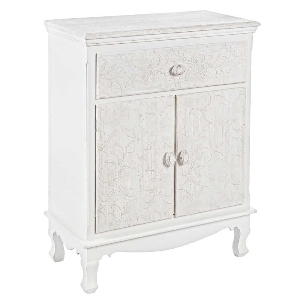 Il Mobiletto 2 Ante 1 Cassetto MDF Bianco Classico da Interno – ALBINE è la scelta ideale per chi desidera arricchire l’arredamento della propria casa con un tocco di eleganza senza tempo. Realizzato in resistente MDF con finitura opaca a base d’acqua, questo mobile dallo stile classico si distingue per la raffinata lavorazione frontale con motivi floreali intarsiati, che donano un effetto decorativo delicato e romantico. Il colore bianco, luminoso e versatile, si adatta con discrezione a vari ambienti come ingresso, soggiorno, camera o corridoio, integrandosi alla perfezione con arredi sia tradizionali che shabby chic. Le maniglie in poliresina, anch’esse ornate finemente, aggiungono un ulteriore dettaglio di charme al design complessivo. Dotato di un cassetto superiore e due ante con ripiani interni, il mobiletto ALBINE offre una soluzione pratica per organizzare oggetti e mantenere l’ordine con stile. La sua silhouette sobria, arricchita da gambe arcuate e profili stondati, evoca sensazioni di armonia e cura artigianale, rendendolo una presenza decorativa che impreziosisce l’atmosfera domestica con gusto e funzionalità.