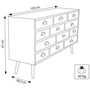 La Cassettiera 12 cassetti in Legno cm 120×36,5×49 – CAL è un complemento d’arredo ideale per chi cerca funzionalità e stile in un’unica soluzione dal forte impatto visivo. Con le sue linee pulite e il design moderno, questa cassettiera si distingue per i suoi dodici cassetti multicolor, ognuno caratterizzato da tonalità vivaci e dettagli originali che conferiscono movimento ed energia all’ambiente. La struttura solida in MDF, il top in effetto naturale e le gambe affusolate in legno di pino richiamano l’estetica scandinava, creando un equilibrio perfetto tra calore del legno e freschezza del colore. I pomelli tipo conchiglia in finitura antica aggiungono un tocco rétro che arricchisce ulteriormente l’insieme. Perfetta per valorizzare ambienti moderni o eclettici come il soggiorno, l’ingresso o la camera da letto, la cassettiera CAL unisce estetica e praticità, offrendo ampio spazio contenitivo senza sacrificare lo stile. Ogni dettaglio è pensato per esprimere personalità e armonia, rendendo questa cassettiera una soluzione d’arredo distintiva e funzionale che trasforma ogni spazio in un ambiente unico e accogliente.