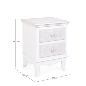 La Cassettiera 2 Cassetti Legno Bianco Shabby da Interno – CAROLINE è un raffinato complemento d’arredo che unisce funzionalità e fascino romantico, perfetto per valorizzare ambienti in stile provenzale o shabby chic. Realizzata in MDF con finitura a base d’acqua, si distingue per l’eleganza del colore bianco opaco e per i suoi pomelli in poliresina a forma di cuore, che aggiungono un tocco decorativo delicato e di gusto. I cassetti, impreziositi da una lavorazione geometrica tono su tono, offrono spazio utile per riporre piccoli oggetti, rendendo la cassettiera ideale come comodino in camera da letto o come mobiletto contenitore nell’ingresso o in un angolo del soggiorno. Le linee morbide e leggermente bombate della struttura conferiscono un’aria retrò e accogliente, mentre la compattezza delle dimensioni la rende adatta anche agli spazi più raccolti. La Cassettiera CAROLINE non è solo un mobile pratico, ma un dettaglio di stile che contribuisce a creare un’atmosfera calda e armoniosa in casa, perfetta per chi ama circondarsi di arredi dal sapore autentico e raffinato.