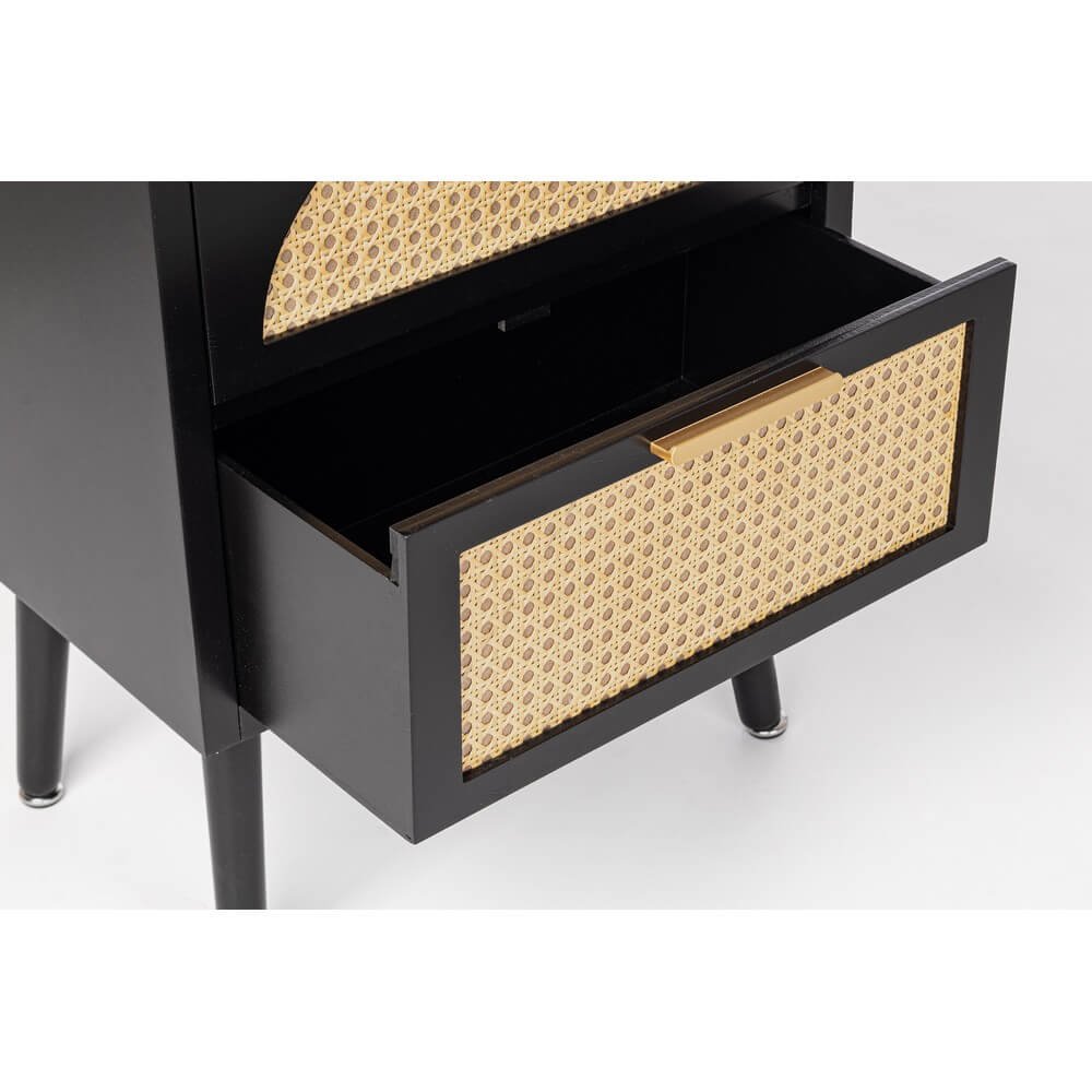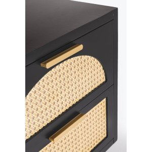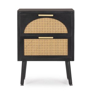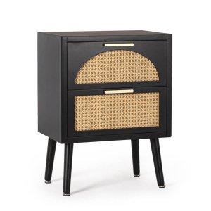 La Cassettiera 2 Cassetti Legno Nero Boho da Interno – JOSIE è una raffinata soluzione d’arredo pensata per valorizzare ogni ambiente con stile ed eleganza. Appartenente alla categoria dei mobili per la casa, questo complemento unisce il fascino esotico dello stile boho a una struttura moderna in legno MDF con finitura nera opaca. Il design è impreziosito da inserti in rattan naturale sui frontali dei cassetti: uno a forma di arco e l’altro rettangolare, un dettaglio distintivo che dona carattere e autenticità. Le linee essenziali della struttura sono sorrette da gambe sottili ma solide in legno di pino, mentre le maniglie in acciaio dorato aggiungono una raffinata nota di luminosità. La cassettiera JOSIE è ideale come comodino o mobile contenitore in salotti, camere da letto o ingressi, grazie alle sue dimensioni compatte e alla capacità contenitiva pratica ed elegante. Perfetta per chi desidera un tocco naturale, ma sofisticato, in ambienti dallo stile contemporaneo o boho-chic, questa cassettiera valorizza ogni spazio con una calda armonia materica e un design unico, rendendo ogni utilizzo un’esperienza di funzionalità e bellezza.