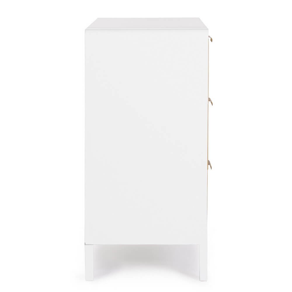 La Cassettiera 3 Cassetti Legno Marrone Moderna da Interno – CHARLOTTE è la scelta perfetta per chi desidera unire funzionalità e stile contemporaneo nell’arredo casa. Questo elegante mobile unisce una struttura robusta in MDF con frontali in legno di paulownia dal raffinato effetto naturale rigato, valorizzati da una finitura in vernice all’acqua che ne esalta la texture materica e autentica. Il contrasto tra il bianco laccato della struttura e la calda tonalità del legno naturale dona al pezzo una presenza fresca e luminosa, perfetta per ambienti moderni o scandi-style. Le maniglie in acciaio dal design minimale aggiungono un tocco di sobria eleganza, mentre le gambe in legno di pino garantiscono stabilità e durata. Ogni dettaglio della cassettiera CHARLOTTE è pensato per offrire praticità senza rinunciare all’estetica, rendendola ideale per camera da letto, ingresso o soggiorno. Grazie ai suoi tre ampi cassetti, è la soluzione ideale per organizzare con stile biancheria, indumenti o accessori, valorizzando l’ambiente con un design attuale, leggero e naturale.