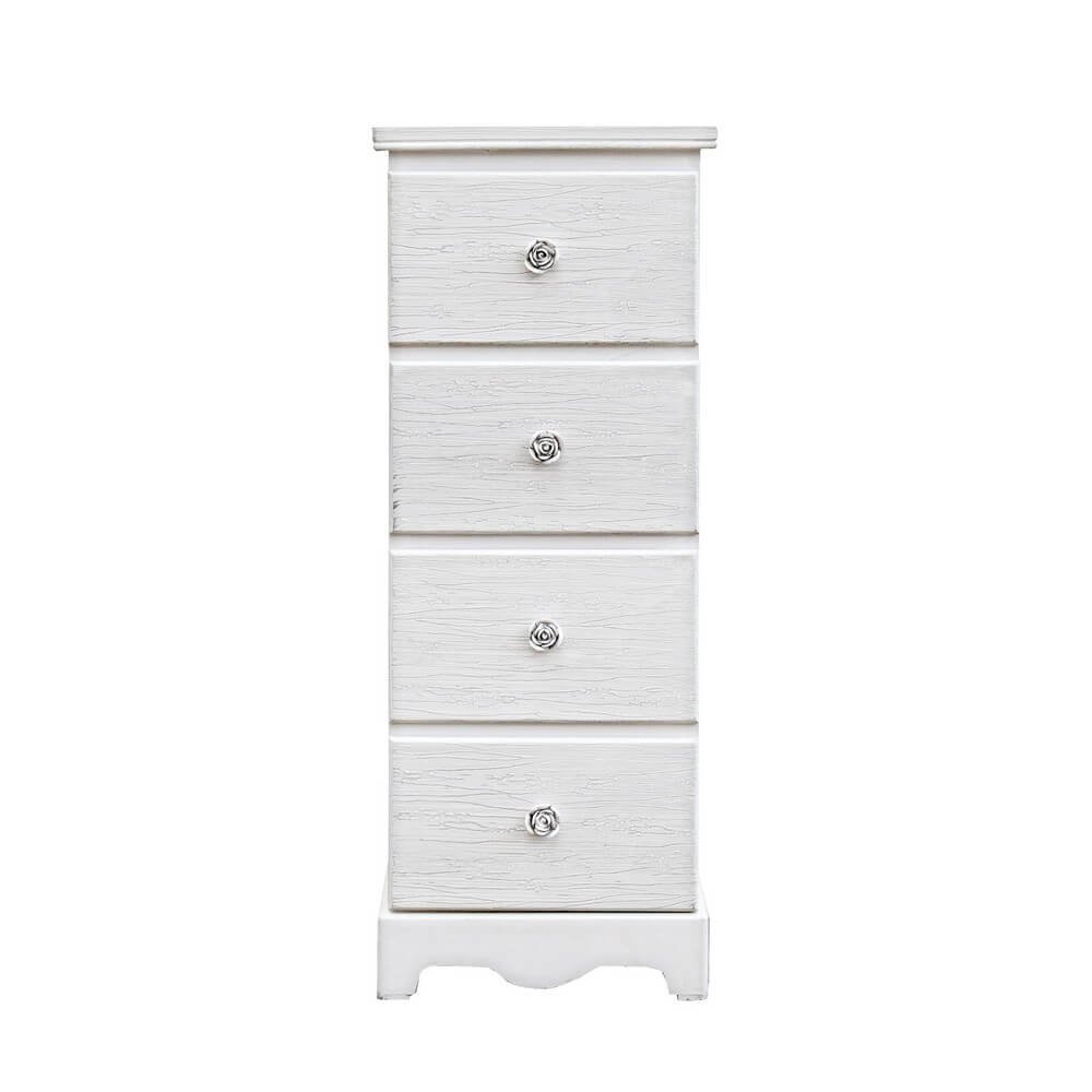 La Cassettiera 4 Cassetti Legno Bianco Rustica da Interno – BLAINE è un complemento d’arredo che unisce funzionalità e fascino senza tempo, perfetta per conferire calore e personalità a ogni ambiente della casa. Realizzata in MDF con finitura bianca opaca, presenta frontali e piani con un raffinato effetto decapato che ne esalta lo stile rustico e shabby chic, rendendola ideale per interni dal gusto provenzale o romantico. Le maniglie in poliresina a forma di fiore, eleganti e originali, aggiungono un dettaglio distintivo che impreziosisce ulteriormente il design. Con le sue linee delicate e verticali, la cassettiera BLAINE è pensata per spazi contenuti, pur offrendo ampia capacità grazie ai quattro cassetti capienti, perfetti per organizzare biancheria, accessori o piccoli oggetti personali. Questo mobile in legno bianco si integra armoniosamente in camera da letto, ingresso o bagno, creando un’atmosfera accogliente e curata. L’incontro tra estetica e funzionalità fa della cassettiera BLAINE una scelta ideale per chi cerca mobili rustici eleganti capaci di valorizzare ogni angolo della casa con gusto ed equilibrio.