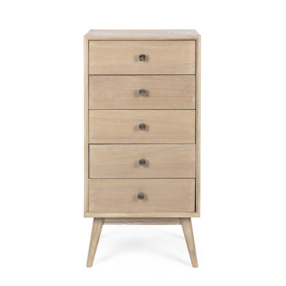 La Cassettiera 5 Cassetti Legno Marrone Rustica da Interno – ALEXANDRA è la scelta ideale per chi desidera coniugare funzionalità e stile rustico elegante nei propri ambienti domestici. Con una struttura in legno di abete e dettagli in MDF, questo mobile si distingue per la sua raffinata finitura marrone chiaro ottenuta con verniciatura a base d’acqua, che ne esalta le venature naturali e dona un aspetto autentico e sofisticato. Le cinque capienti cassettiere sono dotate di pratiche maniglie in acciaio dallo stile sobrio e senza tempo, perfette per un utilizzo quotidiano ordinato e intuitivo. Le gambe slanciate, da assemblare, richiamano il design vintage anni ’50, aggiungendo leggerezza visiva e un tocco retrò che ben si adatta sia ad arredi moderni che più tradizionali. Ideale per camere da letto, ingressi o zone living, la cassettiera ALEXANDRA valorizza ogni angolo della casa offrendo una soluzione contenitiva elegante, solida e di carattere. L’esperienza d’uso è immediatamente appagante grazie alla piacevolezza dei materiali naturali al tatto e alla linearità delle forme, che rendono questo arredo un perfetto equilibrio tra estetica e praticità.