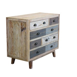 La Cassettiera colorata in Legno cm 99x45x82 – FREDDY è un complemento d’arredo dallo stile vintage autentico che unisce fascino retrò e funzionalità contemporanea. Realizzata in MDF impiallacciato, si distingue per la sua originale finitura multicolor con effetto decapato, che dona un aspetto vissuto e artigianale a ogni cassetto. La struttura solida e i piedini inclinati conferiscono stabilità e movimento visivo, mentre i frontali in legno naturale, trattati con tonalità polverose come il bianco, il grigio, l’azzurro e il marrone, arricchiscono l’ambiente con calore e personalità. Dotata di otto ampi cassetti con maniglie in metallo dal gusto rétro, la cassettiera FREDDY offre una pratica soluzione salvaspazio ideale per la zona giorno, la camera da letto o l’ingresso. È perfetta per chi desidera aggiungere un tocco di carattere agli spazi domestici, grazie a un design che sa coniugare estetica e funzionalità. Questo mobile si inserisce armoniosamente in contesti arredati in stile industriale, country o boho, regalando ogni giorno una piacevole esperienza visiva e un’organizzazione efficace degli oggetti personali.