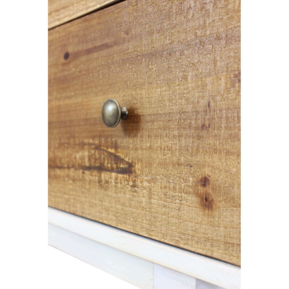 La Cassettiera con sei cassetti in Legno cm 146x45x90 – LUKE è un mobile dallo stile contemporaneo che unisce con naturale armonia funzionalità e design. Realizzata interamente in legno, presenta una struttura verniciata di bianco che contrasta elegantemente con il frontale dei cassetti lasciato al naturale, in una calda tonalità marrone che valorizza le venature del legno. Le dimensioni generose e la presenza di sei ampi cassetti offrono una capienza ottimale per l’organizzazione di abiti, accessori o oggetti d’uso quotidiano, rendendola ideale per la camera da letto, il soggiorno o l’ingresso. Le linee pulite, i piedini leggermente inclinati e i pomelli in metallo completano un’estetica sobria ma di forte personalità, perfetta per ambienti arredati in stile scandinavo, moderno o rustico-chic. La Cassettiera LUKE esprime al meglio il suo valore in contesti che privilegiano materiali naturali e arredi funzionali, offrendo una soluzione pratica senza rinunciare al gusto e all’eleganza.