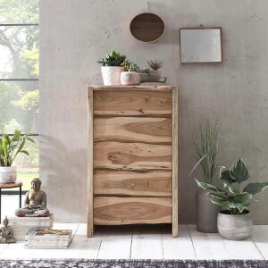 La Cassettiera in legno di acacia – BECKETT è un mobile d’arredo dal fascino autentico che unisce funzionalità e stile naturale in un’unica soluzione elegante. Realizzata interamente in legno massello di acacia, questa cassettiera si distingue per le sue venature irregolari e le sfumature calde del marrone, che donano carattere e unicità a ogni esemplare. Con dimensioni di 70 x 40 x 150 cm, offre ampio spazio contenitivo grazie ai cinque capienti cassetti, perfetti per organizzare abiti, accessori o biancheria. Il design pulito, privo di maniglie, esalta la matericità del legno e richiama uno stile naturale e contemporaneo, ideale per ambienti arredati in chiave boho, zen o scandi. La struttura solida e le finiture curate fanno della cassettiera BECKETT un complemento d’arredo destinato a durare nel tempo, perfetto per valorizzare una camera da letto, un soggiorno o un ingresso con un tocco sobrio e raffinato. Ideale per chi ama integrare nella propria casa mobili in legno autentico e desidera portare un’atmosfera calda e armoniosa in ogni spazio.