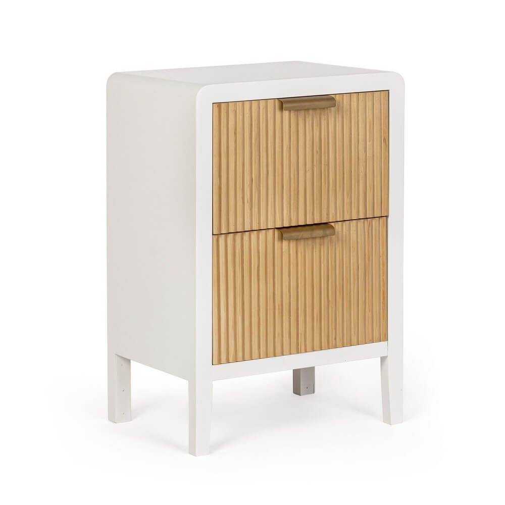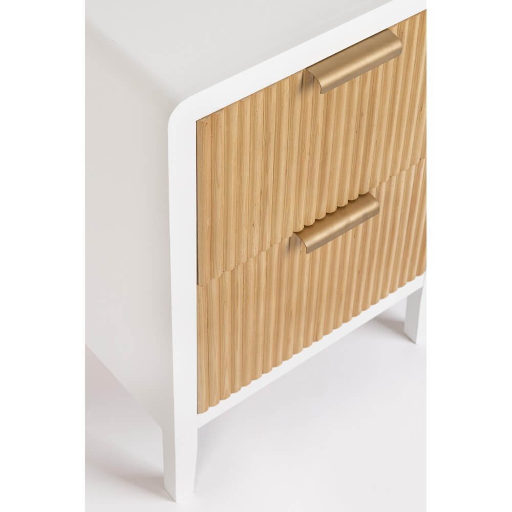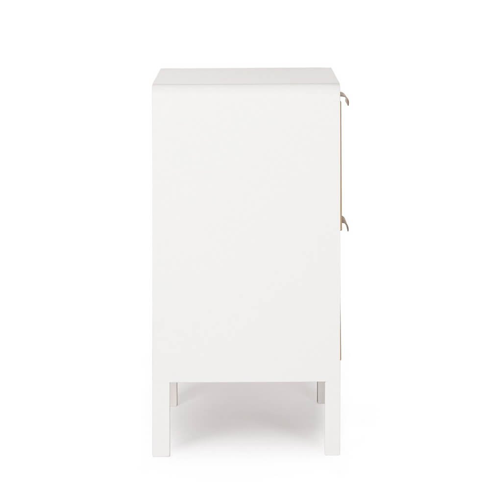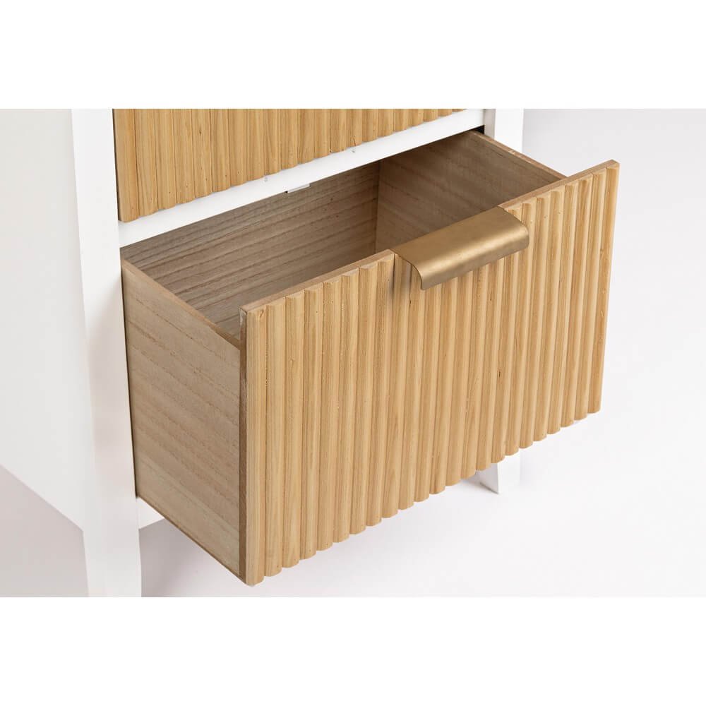 La Cassettiera Legno Bianco Moderna da Interno – CHARLOTTE è una soluzione d’arredo elegante e funzionale, pensata per integrarsi con naturalezza in ambienti contemporanei o dallo stile nordico. La struttura in MDF verniciata in bianco con vernice a base d’acqua le conferisce un aspetto leggero e raffinato, mentre i cassetti in legno di paulownia, con finitura a doghe verticali e maniglie in acciaio, creano un piacevole contrasto visivo che aggiunge personalità e carattere. Le gambe sottili in legno di pino completano il design, garantendo al contempo stabilità e solidità. Il mix di materiali naturali e tonalità neutre rende questa cassettiera perfetta per essere collocata in camera da letto, ingresso o soggiorno, offrendo due ampi cassetti ideali per riporre oggetti mantenendo l’ambiente ordinato. Il design pulito e la qualità delle finiture trasmettono un’estetica minimal ma accogliente, in cui funzionalità e stile convivono armoniosamente. La cassettiera CHARLOTTE esprime al meglio il suo valore in spazi curati, dove ogni dettaglio contribuisce a creare un’atmosfera di equilibrio e calore.