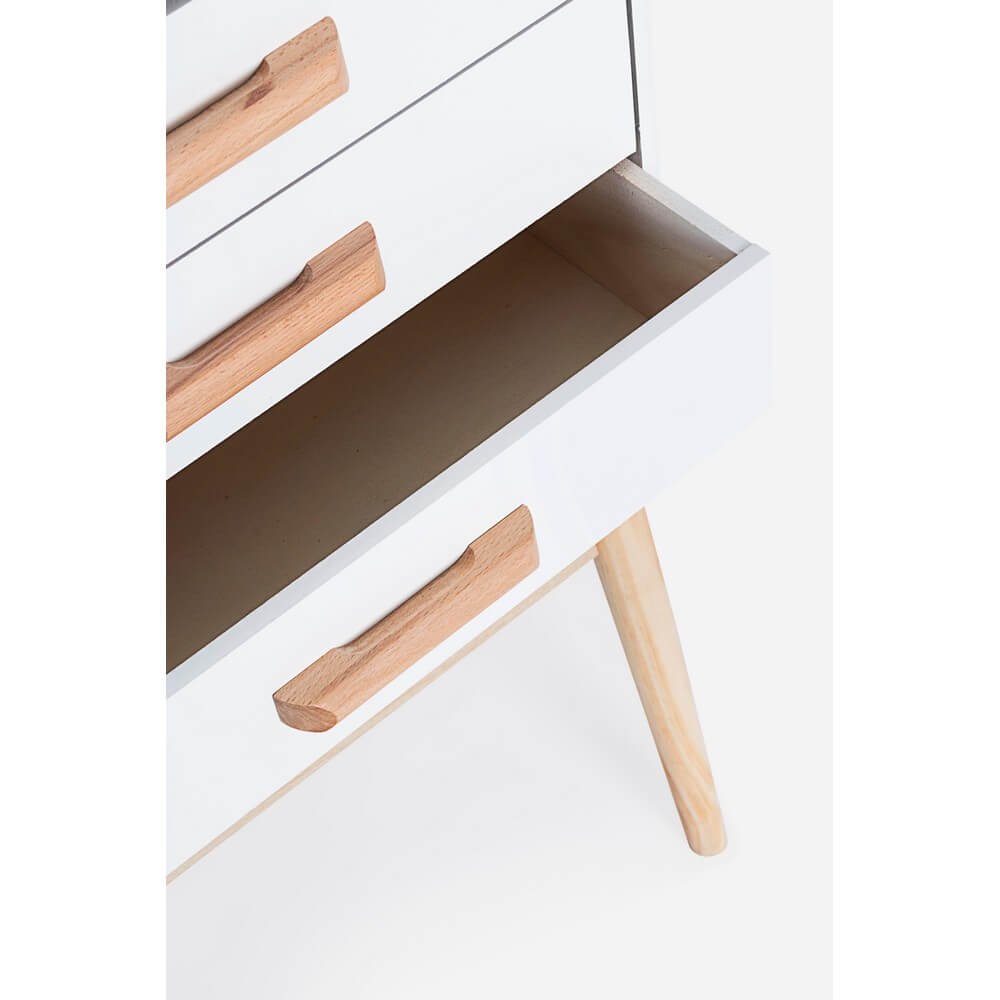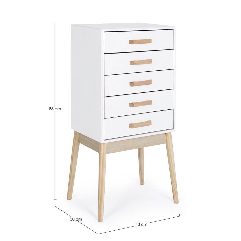 La Cassettiera Legno Bianco Moderna da Interno – EXCEPTIONAL è la scelta ideale per chi desidera unire estetica minimalista e funzionalità quotidiana all’interno della propria casa. Con un design pulito dalle linee essenziali e un’elegante finitura bianca opaca, questa cassettiera si distingue per uno stile moderno ispirato al nordico, perfetto per ambienti contemporanei come camere da letto, ingressi o studi. Realizzata con cura e attenzione ai materiali, presenta solide gambe in legno di pino che garantiscono stabilità, una struttura in resistente MDF e cassetti in legno di paulonia leggera e durevole, completati da pratiche maniglie in legno naturale che aggiungono un piacevole contrasto visivo. Facile da montare, il mobile si adatta con versatilità a vari contesti grazie al suo ingombro ridotto e ai cinque cassetti capienti, ideali per organizzare in modo ordinato piccoli oggetti, biancheria o utensili. La Cassettiera EXCEPTIONAL esprime al meglio il suo valore in spazi curati dove bellezza e praticità si incontrano, garantendo un’esperienza d’uso raffinata e funzionale ogni giorno.