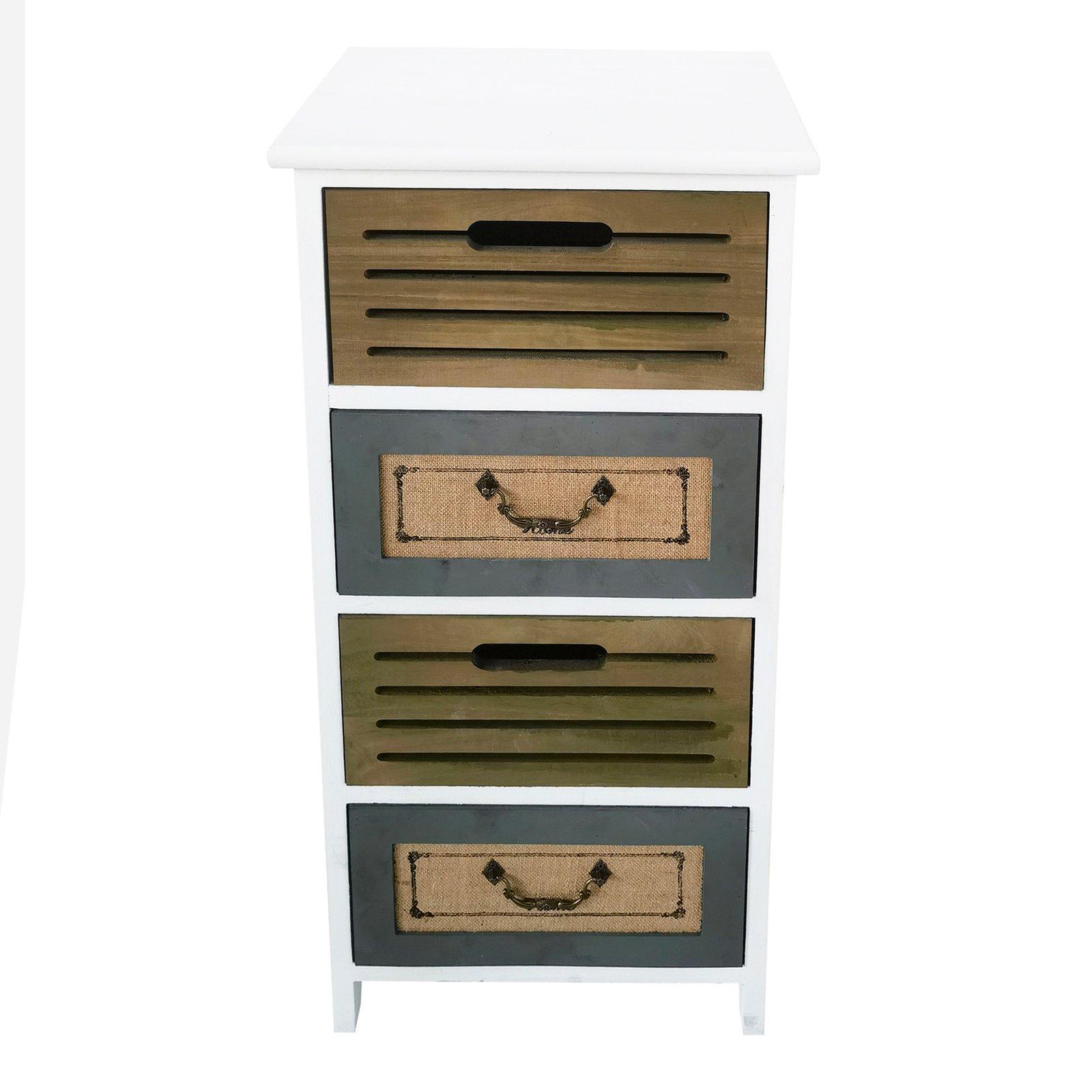 La cassettiera mobiletto per bagno camera ALTOR è un’elegante soluzione d’arredo che unisce funzionalità e stile vintage, ideale per valorizzare ambienti come camere da letto, bagni o spazi accoglienti di hotel. Realizzato in legno con struttura in MDF impiallacciato, questo mobiletto fisso è compatto ma capiente, con dimensioni pari a 35 x 28 x 73 cm, perfetto anche per spazi ridotti. La combinazione cromatica tra bianco, nero e marrone crea un raffinato contrasto, mentre i quattro cassetti variegati nei dettagli offrono un’estetica ricercata: alcuni con effetto dogato in legno naturale, altri con pannelli scuri e maniglie in stile retrò. L’effetto materico, tra linee grezze e finiture rustiche, trasmette un fascino autentico e vissuto che si sposa perfettamente con arredi in stile shabby chic o industriale. Il mobiletto ALTOR esprime al meglio il suo valore in contesti dove ogni elemento d’arredo racconta una storia, offrendo una combinazione unica di estetica e praticità per un uso quotidiano elegante e ordinato.