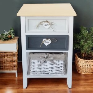 La cassettiera mobiletto per bagno camera DAMON è un raffinato complemento d’arredo che unisce funzionalità e stile shabby chic, perfetto per ambienti come bagno, camera da letto o anche contesti ricettivi come hotel che desiderano evocare un’atmosfera accogliente e curata. Realizzata in legno e MDF impiallacciato, presenta una struttura solida e compatta con dimensioni di 35 x 28 x 62 cm, ideale per spazi ristretti. I tre cassetti distinti, due in legno verniciato e uno in vimini bianco con rivestimento in tessuto, creano un piacevole contrasto cromatico tra bianco, nero e marrone, esaltato da dettagli decorativi come i cuoricini in legno con scritta “Home”, legati con spago naturale. Il top in finitura chiara aggiunge un tocco di calore visivo che bilancia l’effetto del contrasto tono su tono. La cassettiera DAMON si distingue per la sua versatilità decorativa e per l’eleganza discreta che ben si inserisce in contesti dallo stile rustico, provenzale o romantico. Un elemento che non solo organizza con stile, ma completa l’ambiente con una nota di charme autentico e familiare.