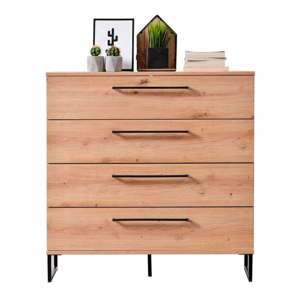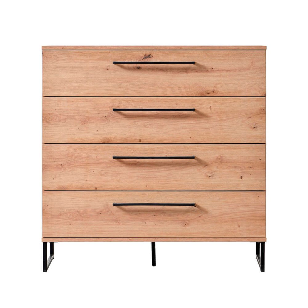 La cassettiera moderna 4 cassetti cm 91,5 x 42 x 92,5 h – ZENWOOD è un complemento d’arredo elegante e funzionale, perfetto per chi desidera ottimizzare gli spazi senza rinunciare allo stile. Realizzata in resistente truciolare bilaminato, assicura robustezza e durata nel tempo, mentre la finitura in rovere chiaro esalta le venature naturali del legno, donando un tocco caldo e accogliente a qualsiasi ambiente. Il design essenziale e pulito si ispira allo stile contemporaneo con richiami industriali, evidenziato dai piedini in metallo nero e dalle maniglie sottili che creano un raffinato contrasto visivo. Dotata di quattro ampi cassetti scorrevoli, questa cassettiera offre una capiente soluzione contenitiva, ideale per la zona notte, l’ingresso o il soggiorno. La cassettiera ZENWOOD si inserisce armoniosamente in ambienti moderni, scandinavi o minimalisti, conferendo ordine, equilibrio estetico e praticità quotidiana. Perfetta per chi ama un arredamento sobrio ma ricercato, si distingue per la cura nei dettagli e la qualità dei materiali, valorizzando con discrezione ogni spazio della casa.