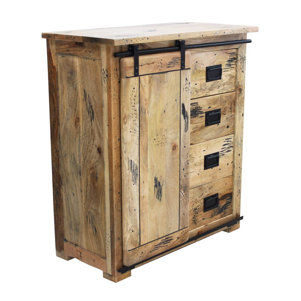 La cassettiera per soggiorno Industrial in legno cm 90x45x100 – RICK è un elemento d’arredo che unisce funzionalità e forte personalità estetica, ideale per ambienti moderni e dal carattere deciso. Realizzata in legno di mango massello, questa cassettiera si distingue per l’aspetto autentico e vissuto, con superfici naturalmente irregolari e segni volutamente rustici che esaltano la matericità del legno. Il design è impreziosito da dettagli in acciaio nero opaco, come la guida superiore per l’anta scorrevole, che conferiscono un tocco industriale deciso e contemporaneo. Con le sue dimensioni compatte ma capienti (cm 90 x 45 x 100 h), il mobile RICK offre un’ottima organizzazione grazie a 4 cassetti frontali e 2 pratici ripiani nascosti dietro l’anta. L’accostamento tra le tonalità calde del marrone naturale e le finiture metalliche scure rende questa cassettiera perfetta per soggiorni, open space o ingressi dallo stile urban, loft o vintage. Il prodotto esprime al meglio il suo valore in un contesto domestico dove estetica e praticità devono convivere armoniosamente, regalando un’atmosfera accogliente e di grande personalità.