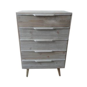 Il Mobiletto 5 cassetti in Legno cm 60x40x95 – EDWYN unisce funzionalità e raffinatezza estetica in perfetto stile industrial. Realizzato con struttura in legno di paulonia e MDF, si distingue per la sua finitura in legno sbiancato dal tono marrone chiaro, che esalta le venature naturali e dona calore agli ambienti. I cinque cassetti spaziosi offrono un’organizzazione pratica e ordinata, mentre le linee essenziali e le maniglie intagliate ne amplificano il carattere sobrio e contemporaneo. Le gambe affusolate e leggermente inclinate richiamano un gusto vintage rivisitato in chiave moderna, rendendolo un arredo versatile ideale per camera da letto, soggiorno o ingresso. Il mobiletto EDWYN è perfetto per chi cerca una cassettiera d’arredo resistente, elegante e capace di integrarsi con armonia sia in contesti industrial-chic che scandi. La combinazione di materiali naturali e dettagli funzionali definisce un complemento che non passa inosservato, capace di trasmettere una sensazione di accogliente autenticità nella quotidianità della casa.