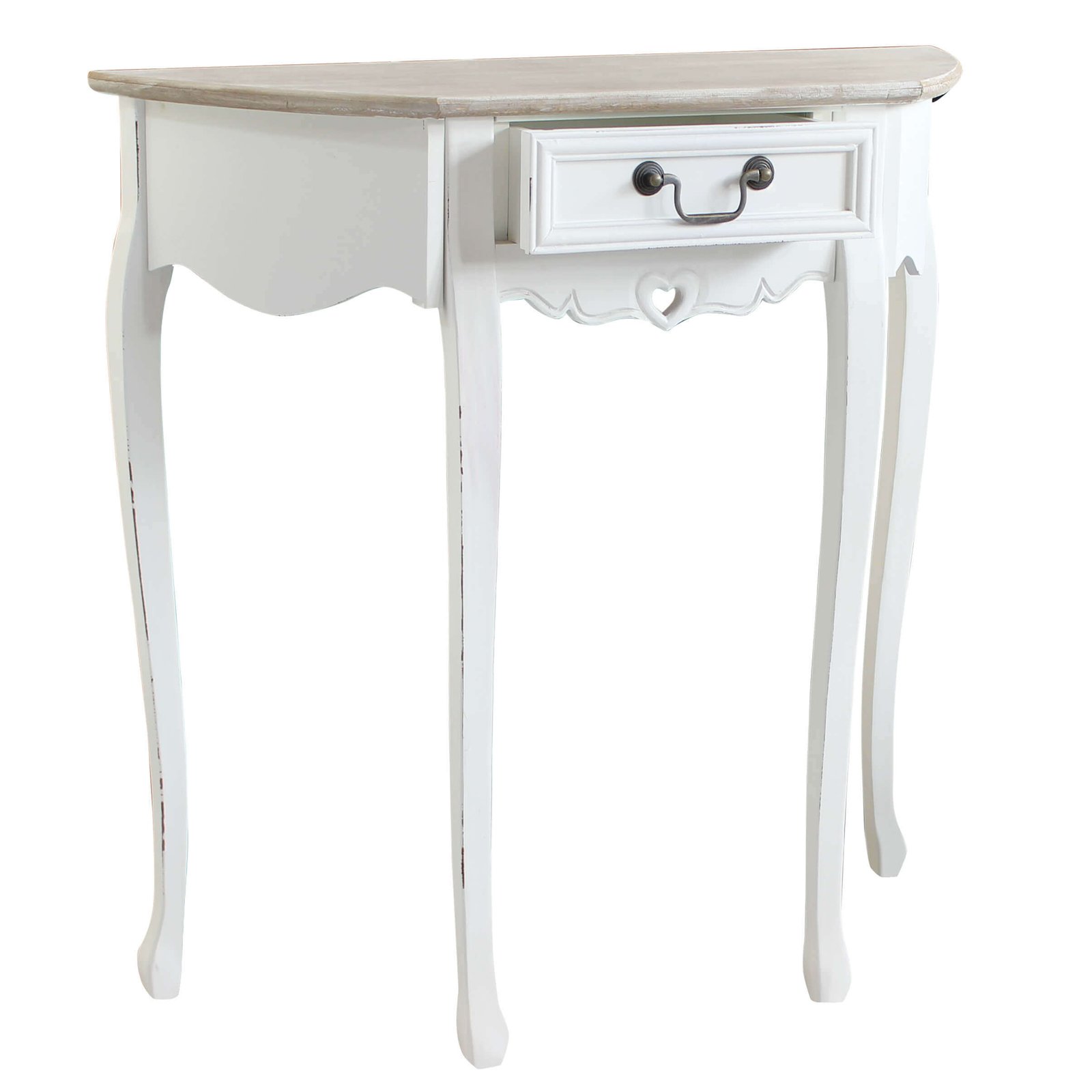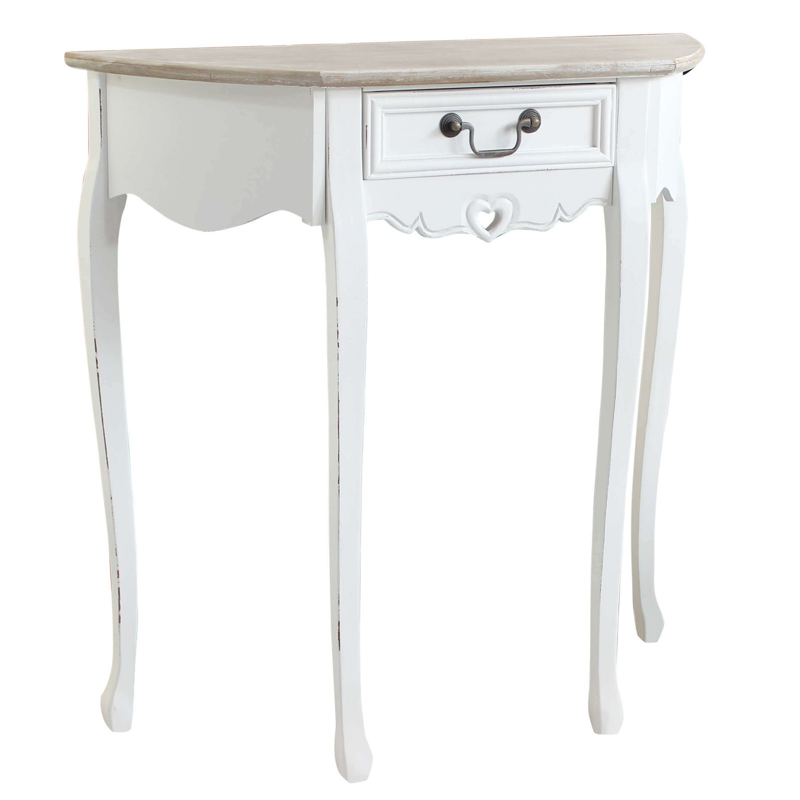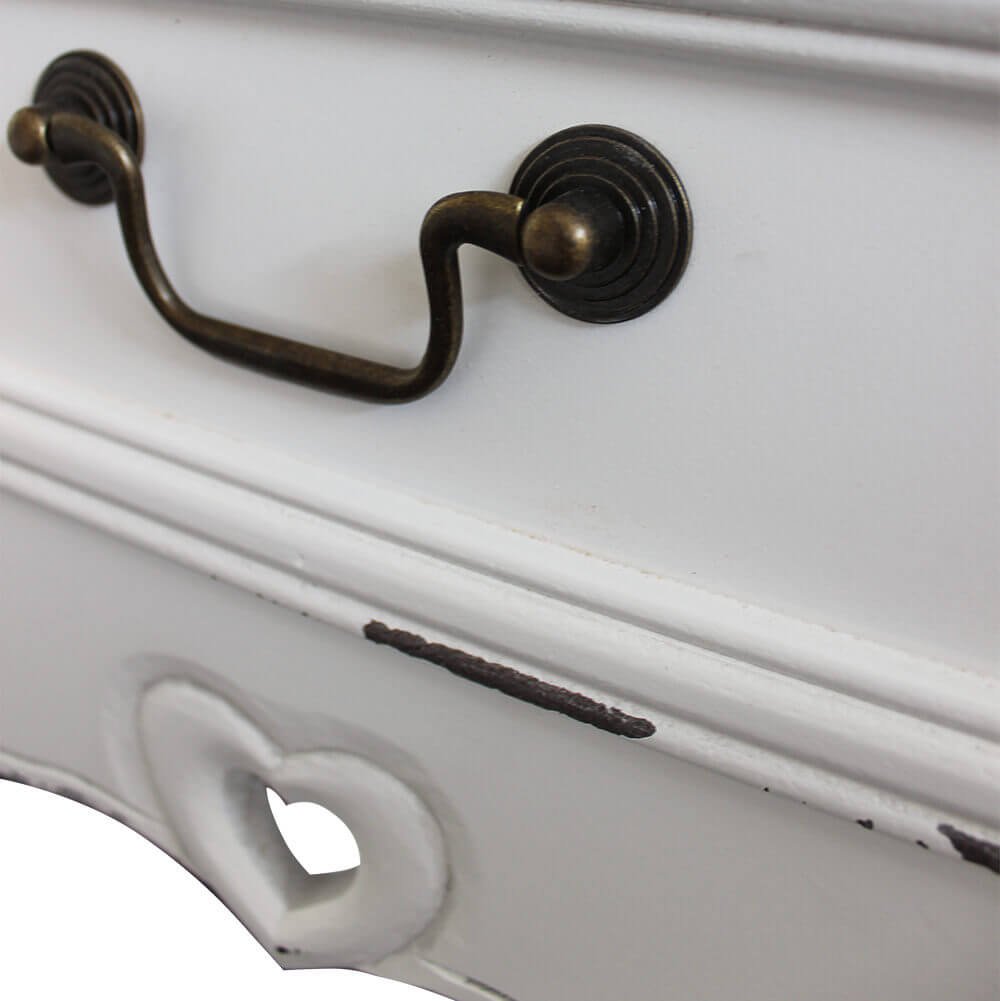 Il Mobiletto con 1 cassetto shabby chic in Legno cm 79x31x79 – EARNEST è un’elegante soluzione d’arredo pensata per arricchire con stile e personalità ogni ambiente della casa. La struttura in legno di paulonia color bianco, impreziosita da leggere finiture vissute, trasmette il tipico fascino romantico dello stile shabby chic, mentre il top in tonalità tortora/noce decapato crea un delicato contrasto cromatico che dona calore e raffinatezza. Il design curvo delle gambe e il piccolo cuore intagliato sotto il cassetto richiamano un gusto artigianale e vintage, perfetto per ambienti come ingressi, camere da letto o soggiorni eleganti. Il cassetto, funzionale e decorativo al tempo stesso, è l’ideale per riporre piccoli oggetti, aggiungendo praticità senza rinunciare all’estetica. Realizzato in legno e MDF impiallacciato, il mobiletto EARNEST unisce leggerezza e solidità, con dimensioni compatte che lo rendono versatile nello spazio. Ideale per chi desidera donare un tocco romantico e luminoso alla propria casa, si presta magnificamente in contesti d’arredo dal gusto country, provenzale o retrò, regalando un’immediata sensazione di accoglienza e charme senza tempo.
