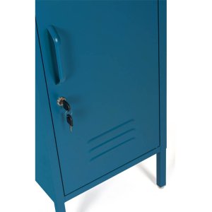Il Comodino in Acciaio Blu Industriale da Interno – CLIFTON unisce un’estetica urbana essenziale con funzionalità moderna, rendendolo la scelta ideale per chi ama lo stile industriale e i materiali resistenti. Realizzato interamente in acciaio verniciato a polvere epossidica, questo comodino è pensato per durare nel tempo, offrendo non solo un look deciso e contemporaneo, ma anche una struttura solida e pratica per l’utilizzo quotidiano. Il colore blu intenso aggiunge un accento originale e vibrante all’arredo, perfetto per ravvivare ambienti moderni, loft metropolitani o spazi abitativi dallo spirito giovane. Dotato di due ripiani regolabili, offre una versatilità ottimale nell’organizzazione degli oggetti personali, mentre la porta con maniglia integrata e serratura garantisce ordine e discrezione. Il design minimal, arricchito da dettagli tipici dello stile industriale come le lamelle decorative sulla parte inferiore della porta, conferisce carattere e personalità al pezzo. Il Comodino CLIFTON è ideale in camera da letto, ma si presta anche come mobile contenitore in studi, ingressi o ambienti creativi, valorizzando ogni spazio con un tocco autentico e funzionale.