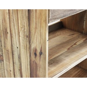 Il Comodino in Pino riciclato cm 60x40x85 – PINE è un’elegante soluzione d’arredo che unisce funzionalità e sostenibilità, perfetta per ambienti dallo stile rustico, country o industriale. Realizzato interamente in legno di pino riciclato, questo mobile valorizza la materia prima naturale con le sue venature autentiche, le imperfezioni del legno vissuto e la calda tonalità marrone che dona carattere e calore a qualsiasi stanza. Il design pulito e lineare, arricchito da un cassetto superiore e due ripiani aperti, assicura grande versatilità, ideale sia come comodino accanto al letto che come piccolo mobile contenitivo per ingresso o zona living. Le gambe inclinate e stabili conferiscono una leggera elevazione dal pavimento, esaltando lo stile vintage senza rinunciare a stabilità e praticità nell’uso quotidiano. Il Comodino PINE non è solo un elemento d’arredo, ma anche un’espressione di attenzione all’ambiente grazie all’impiego di legno recuperato, che conferisce unicità a ogni pezzo. Si inserisce perfettamente in contesti caldi e accoglienti, regalando un tocco autentico all’atmosfera domestica.