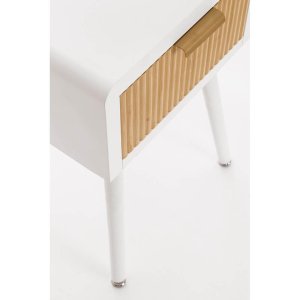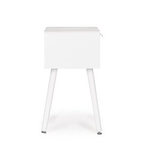 Il Comodino Legno Bianco Moderno da Interno H57 cm – CHARLOTTE è un raffinato elemento d’arredo che unisce funzionalità e stile contemporaneo, ideale per impreziosire camere da letto o zone living con eleganza discreta. La struttura compatta, realizzata in MDF verniciato bianco a base d’acqua, si distingue per il design minimal e le linee squadrate ammorbidite dagli angoli stondati, mentre le gambe in legno di pino, inclinate e affusolate, donano slancio e leggerezza alla figura complessiva. Il cassetto realizzato in paulownia impiallacciata presenta un frontale a effetto dogato in tonalità naturale che crea un raffinato contrasto materico e cromatico con il bianco laccato, conferendo un tocco di calore nordico. La maniglia in acciaio satinato completa il look con discrezione e praticità. Il comodino CHARLOTTE è perfetto per ambienti moderni, scandinavi o contemporanei, dove ogni dettaglio di design conta, offrendo al contempo uno spazio contenitivo utile per oggetti personali, libri o piccoli accessori. Collocato accanto al letto o accanto a una poltrona, esprime il suo massimo valore creando un’atmosfera ordinata, luminosa e dal gusto attuale.