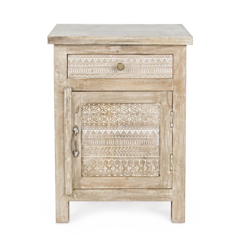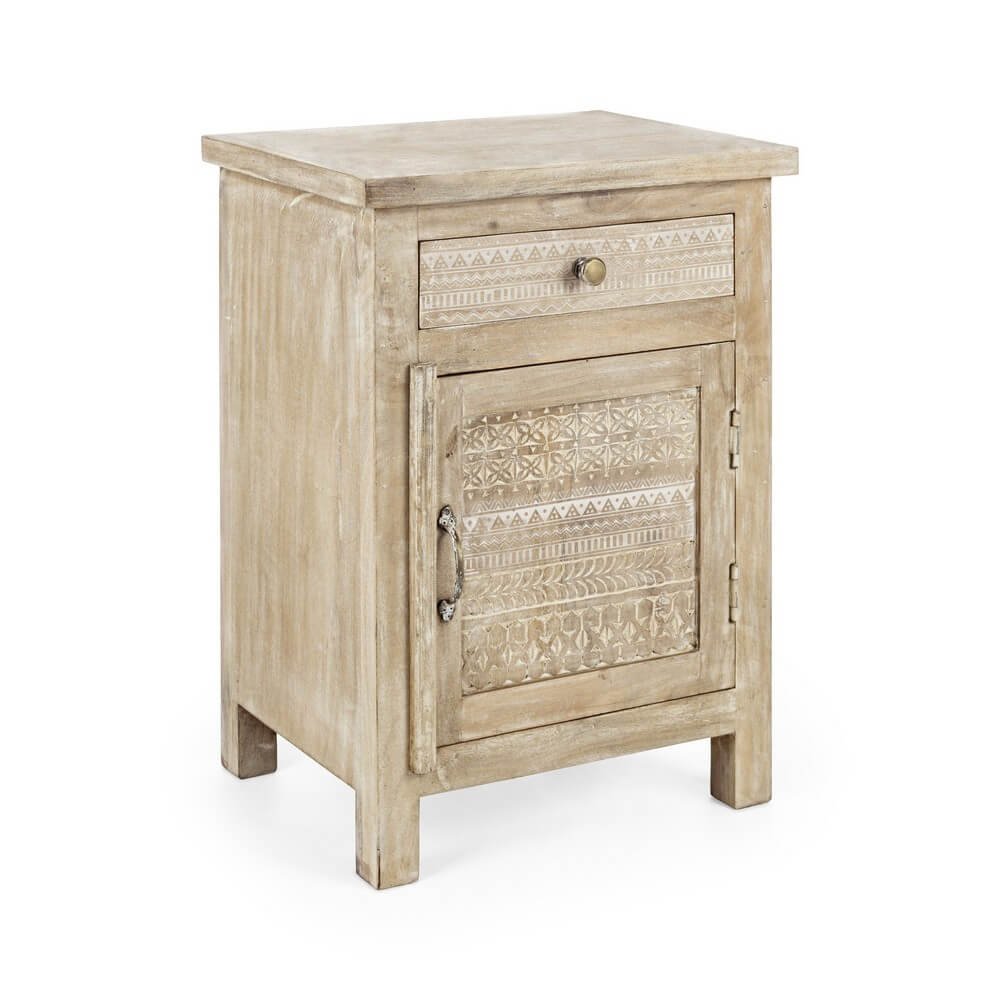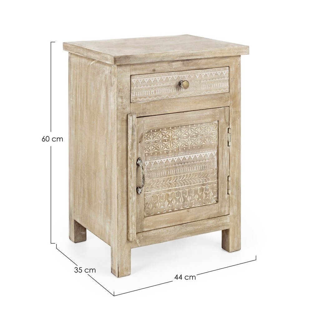Il Comodino Legno Marrone Rustico da Interno – ASHLEY è un elemento d’arredo che unisce autenticità artigianale e funzionalità quotidiana, pensato per valorizzare ambienti interni con un tocco caldo e naturale. Realizzato in legno di mango, presenta una struttura solida arricchita da raffinate decorazioni intarsiate a mano che evocano motivi etnici e geometrici, donando personalità al mobile e rendendolo un vero pezzo d’accento. Il colore marrone chiaro con finitura a base di nitrocellulosa esalta le venature naturali del legno, mentre lo schienale e il fondo dei cassetti in MDF garantiscono leggerezza e stabilità. I dettagli in ottone, come il pomello e la maniglia dalla forma rétro, conferiscono ulteriore pregio al design rustico e vintage. Perfetto come comodino in una camera da letto dallo stile boho chic, country o industriale, questo mobile si integra armoniosamente anche in soggiorni o ingressi, grazie al suo carattere versatile e accogliente. Il Comodino ASHLEY non è solo un complemento d’arredo pratico, con cassetto e vano contenitore capiente, ma anche un elemento distintivo che arricchisce l’atmosfera della casa con un forte impatto estetico e sensazioni materiche autentiche.