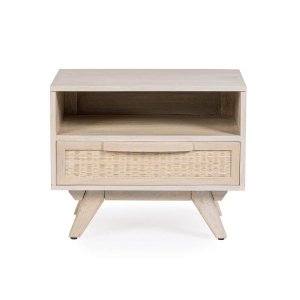 Il Comodino Legno Marrone Rustico da Interno – LENA è una raffinata soluzione d’arredo che unisce estetica naturale e funzionalità con uno stile rustico contemporaneo. Realizzato con una solida struttura in legno di mango, presenta dettagli distintivi come il frontale del cassetto in rattan intrecciato, che aggiunge charme artigianale e un tocco materico distintivo. Il trattamento con vernice a base di nitrocellulosa e la leggera decapatura bianca donano al mobile un effetto vissuto e luminoso, perfetto per ambienti interni dallo spirito accogliente, come camere da letto in stile country, scandinavo o boho-chic. I piedini svasati, da assemblare, conferiscono leggerezza visiva e un design stabile, mentre la combinazione di uno scomparto aperto e un cassetto consente di organizzare facilmente oggetti personali, libri o accessori. Il comodino LENA esprime al meglio il suo valore all’interno di spazi dedicati al relax, dove materiali naturali e colori caldi creano un’atmosfera armoniosa e rilassante.