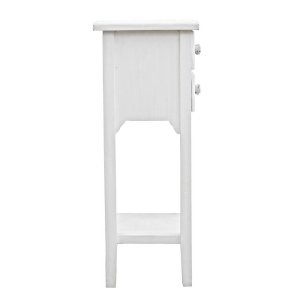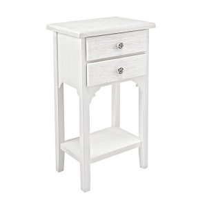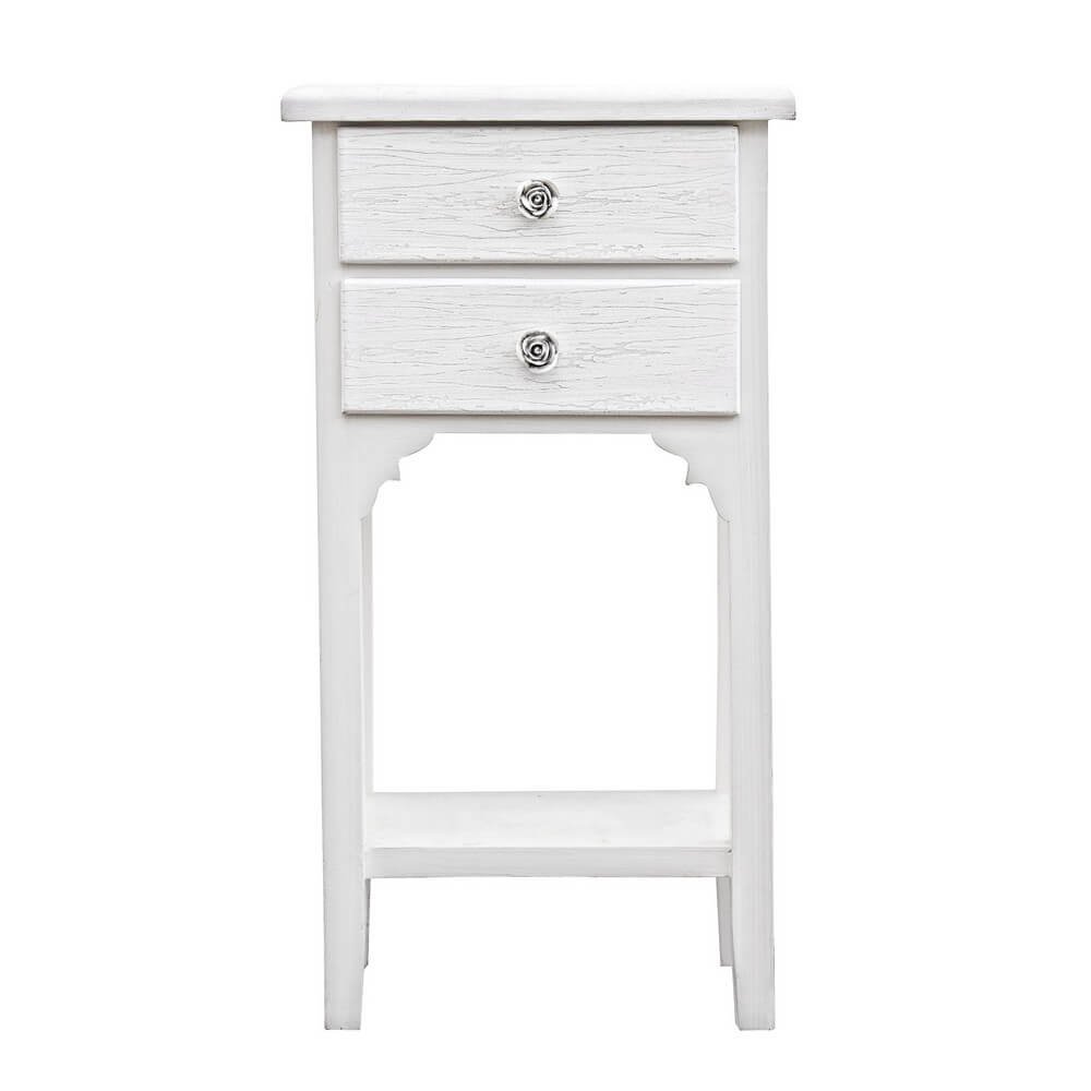 Il Mobiletto 2 Cassetti Legno Bianco Rustico da Interno – BLAINE è l’accento perfetto per chi desidera arredare la propria casa con uno stile romantico e senza tempo. Realizzato in MDF con finitura bianca opaca, impreziosita da un raffinato effetto decapato sui frontali e sui piani, questo comodino trasmette un’eleganza rustica e delicata, ideale per ambienti in stile shabby chic, provenzale o country. Le maniglie in poliresina a forma di rosa ne esaltano il carattere decorativo e aggiungono un tocco poetico e distintivo al design. La struttura slanciata con gambe alte e intagliate, unita al pratico ripiano inferiore e ai due cassetti capienti, lo rende una soluzione funzionale e salvaspazio, perfetta come comodino nella zona notte o come mobiletto d’appoggio in un ingresso o salotto luminoso. Il Mobiletto BLAINE unisce estetica e praticità, donando calore e personalità agli interni con semplicità raffinata, ed è pensato per chi ama arricchire i propri spazi con dettagli che raccontano una storia di stile e autenticità.