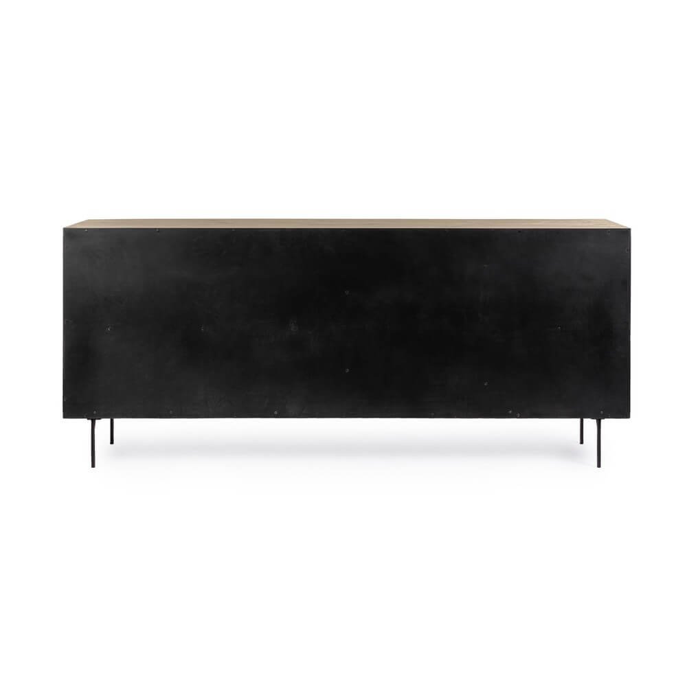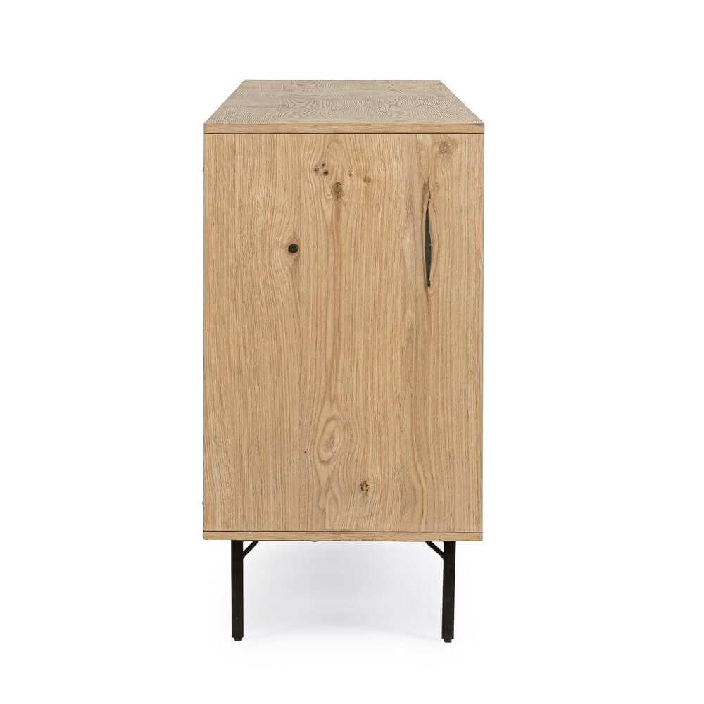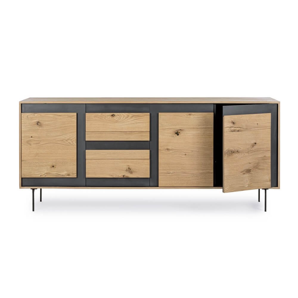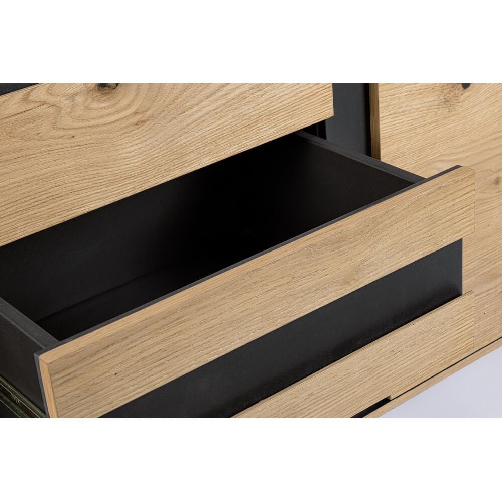 La Credenza Legno Marrone Industriale da Interno – WHITECAFÉ è la scelta ideale per chi desidera arredare la casa con un mobile dal carattere deciso, in perfetto equilibrio tra estetica contemporanea e funzionalità. Realizzata in MDF impiallacciato rovere con una finitura naturale trattata con vernice a base d’acqua, questa credenza si distingue per il raffinato contrasto tra il calore del legno e l’audace struttura in acciaio verniciato nero, espressione autentica dello stile industriale. I dettagli visivi, come le venature naturali e i nodi a vista, conferiscono unicità al design, mentre le gambe sottili in acciaio sollevano la struttura donandole leggerezza ed eleganza. Gli interni ben organizzati includono un vano con mensola e cassetti neri dotati di guide scorrevoli in acciaio, perfetti per custodire stoviglie, documenti o accessori della zona living con ordine e discrezione. La Credenza Legno Marrone Industriale da Interno – WHITECAFÉ trova la sua collocazione ideale in ambienti moderni o urban chic, aggiungendo un tocco distintivo e sofisticato alla zona giorno o alla sala da pranzo, dove diventa un elemento d’arredo funzionale e scenografico al tempo stesso.