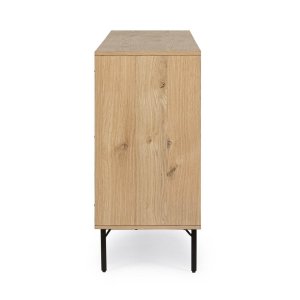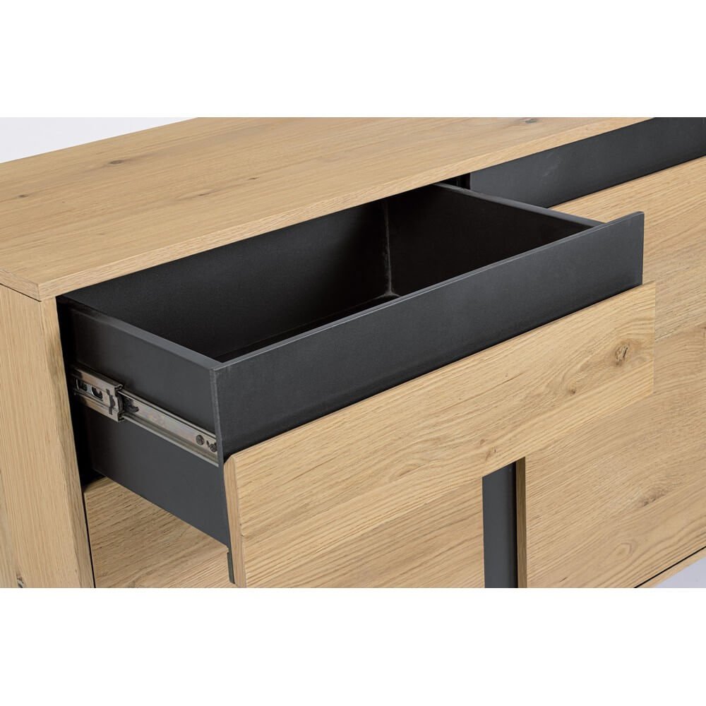 La Credenza Legno Marrone Industriale da Interno – WHITECAFÉ è una soluzione d’arredo di grande carattere, pensata per ambienti moderni e ricercati che vogliono unire estetica e funzionalità. Realizzata in MDF impiallacciato rovere con finitura naturale e vernice a base d’acqua, questa credenza si caratterizza per l’equilibrio armonioso tra il calore autentico del legno marrone e il carattere deciso dei dettagli in acciaio verniciato a polvere, che ne definiscono lo stile industriale contemporaneo. Le linee pulite sono impreziosite da un raffinato contrasto cromatico nero nelle cornici e negli interni dei cassetti, conferendo profondità visiva e un tocco sofisticato. I cassetti scorrono con fluidità grazie alle guide in acciaio, mentre il vano con mensola integrata offre un’ottima capacità contenitiva. Le gambe sottili, anch’esse in acciaio verniciato, accentuano la leggerezza visiva dell’insieme, pur garantendo solidità e stabilità. Ideale per il soggiorno o la zona pranzo, la credenza WHITECAFÉ si distingue come elemento d’arredo versatile e di alta qualità, capace di valorizzare lo spazio con uno stile deciso ed elegante, offrendo al contempo praticità e ordine nella vita quotidiana.