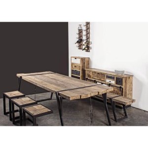 La Credenza Legno Marrone Rustica da Interno – THEODORE è un pezzo d’arredo che cattura immediatamente l’attenzione grazie al suo carattere deciso e al design ispirato allo stile industriale e country chic. Realizzata in legno di mango con struttura solida e autentica, arricchita da una base in acciaio che ne sottolinea la robustezza, questa credenza si distingue per la finitura a base di nitrocellulosa, che valorizza le venature naturali del legno e conferisce un aspetto vissuto e materico. Il frontale è un tripudio visivo di elementi unici: cassetti di diverse dimensioni e colori con effetto decapato, ante scorrevoli su binari in metallo e scritte decorative che evocano atmosfere vintage e artigianali. Il mix cromatico di marrone caldo abbinato a dettagli in nero, bianco e grigio contribuisce a creare una composizione vivace ma equilibrata, perfetta per ambienti interni che vogliono esprimere personalità e gusto per i dettagli. La credenza THEODORE non è solo un complemento di stile, ma anche un alleato funzionale grazie ai suoi spazi contenitivi ben organizzati. Ideale per soggiorni, cucine o ingressi, dona calore e carattere alla casa, elevando ogni ambiente con un tocco di autenticità.