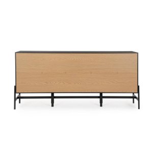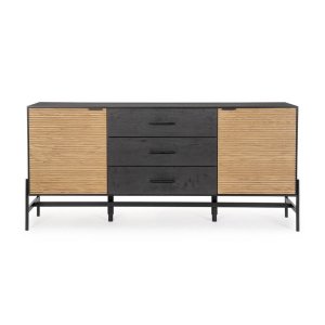 La credenza in legno nero industriale da interno ALESSIA è il perfetto connubio tra funzionalità e design contemporaneo. Realizzata con una solida struttura in legno di frassino, completa di piano, schienale e ripiani in MDF, si distingue per l’elegante contrasto tra le ante scanalate color legno naturale e i frontali dei cassetti in frassino verniciato nero a base d’acqua. Le maniglie in acciaio e la base metallica conferiscono un deciso carattere industrial chic, ideale per ambienti moderni, urban o dallo stile minimalista. Grazie alla sua composizione, offre un’eccellente capienza distribuita in due vani chiusi e tre ampi cassetti centrali, rendendola perfetta per la zona living, l’ingresso o persino la sala da pranzo. Il design lineare e l’accurata scelta dei materiali rendono la credenza Legno Nero Industriale da Interno – ALESSIA non solo un mobile pratico da assemblare, ma anche un elemento d’arredo dal forte impatto visivo, capace di arricchire l’ambiente con un tocco sofisticato e deciso. Ideale per chi cerca un equilibrio tra estetica pulita, qualità e funzionalità quotidiana.