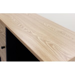 La **credenza moderna con 6 vani in truciolare cm 100×39,5×135 – QUANAH** è la soluzione d’arredo perfetta per chi cerca funzionalità ed eleganza in un’unica struttura compatta. Realizzata in resistente truciolare bilaminato, questa credenza unisce l’aspetto caldo e naturale delle ante effetto legno con la modernità della struttura e dei ripiani interni in nero opaco, creando un raffinato contrasto visivo. Lo stile contemporaneo pulito e lineare si adatta perfettamente a soggiorni, sale da pranzo o ambienti living dal design attuale, offrendo un’eccellente capacità di contenimento grazie ai suoi 6 vani chiusi con 3 pratiche ante. Le dimensioni compatte e l’altezza contenuta permettono di sfruttare al meglio lo spazio verticale, senza rinunciare all’estetica. I piedini neri sottili ed eleganti aggiungono un tocco leggero e sollevano visivamente la struttura, agevolando anche le operazioni di pulizia. La **QUANAH** esprime al meglio il suo valore in ambienti moderni dove ordine, design e praticità sono protagonisti, rendendo ogni angolo della casa più organizzato e stiloso.