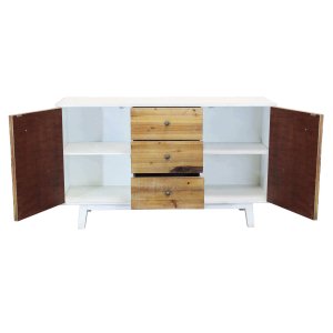 La madia a due ante in legno SPIKE, con dimensioni cm 142x45x83, è un elemento d’arredo dal forte impatto visivo che unisce funzionalità e stile in modo impeccabile. Realizzata interamente in legno, questa credenza è caratterizzata da un elegante contrasto cromatico tra la struttura bianca e gli elementi frontali in legno naturale, come ante e cassetti, che ne esaltano il design rustico-contemporaneo. I tre cassetti centrali con maniglie in metallo e le due ante laterali con ripiani interni offrono un’eccellente capacità contenitiva, perfetta per organizzare stoviglie, biancheria o oggetti decorativi. La madia SPIKE si colloca armoniosamente in ambienti come il soggiorno, la sala pranzo o l’ingresso di casa, aggiungendo un tocco di calore e autenticità grazie ai suoi dettagli in finitura grezza e naturale. Le sue linee pulite e la composizione materica la rendono ideale per arredamenti in stile rustico moderno, country chic o industriale leggero. È un mobile che non solo arreda con carattere, ma che diventa anche parte integrante dell’esperienza quotidiana della casa, offrendo praticità e stile in un’unica soluzione.