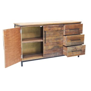 La Madia con due ante e tre cassetti in Legno Metallo cm 150x40x86 – DARWIN è un arredo dal carattere deciso che unisce estetica industriale e funzionalità contemporanea. Realizzata in legno con finitura naturale, esalta le venature materiche e autentiche del materiale, mentre le gambe e le maniglie in acciaio nero conferiscono un tocco moderno e raffinato, perfetto per ambienti in stile loft o urban chic. Con le sue dimensioni generose e la struttura solida, offre un’ampia capienza grazie ai tre cassetti laterali e alle due ante che nascondono pratici ripiani, ideali per organizzare stoviglie, biancheria o oggetti di uso quotidiano. La combinazione cromatica di marrone e nero valorizza al massimo la personalità del mobile, rendendolo protagonista sia in sala da pranzo sia in soggiorno. La madia DARWIN è la scelta ideale per chi cerca un mobile che coniughi design essenziale, spirito industriale e materiali di qualità, perfetto per definire con stile gli spazi della casa mantenendo ordine ed eleganza.