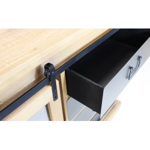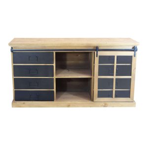 La Madia Industrial in Acciaio Legno cm 147×42 3×75 – JERRARD è un perfetto esempio di equilibrio tra estetica contemporanea e funzionalità robusta, pensato per arredare con carattere qualsiasi ambiente della casa. Dallo stile industrial deciso, questa credenza combina la calda matericità del legno naturale con la grinta urbana dell’acciaio nero, regalando un impatto visivo dinamico e autentico. L’anta scorrevole su binario metallico, con inserti in vetro e griglia a riquadri, si contrappone a quattro comodi cassetti laterali in acciaio, che aggiungono ritmo e funzionalità alla struttura. Le generose dimensioni (cm 147 x 42,3 x 75 h) la rendono ideale come mobile contenitore in soggiorno, sala da pranzo o ingresso, offrendo ampio spazio per organizzare stoviglie, libri o oggetti decorativi. La combinazione cromatica tra il marrone del legno e il nero dell’acciaio crea un contrasto raffinato e versatile, adattandosi facilmente sia ad ambienti dallo stile urbano che a spazi più rustici. La madia JERRARD rappresenta una scelta di design forte e di carattere, pensata per chi ama circondarsi di arredi unici e di alta qualità, capaci di aggiungere personalità e praticità agli spazi quotidiani.