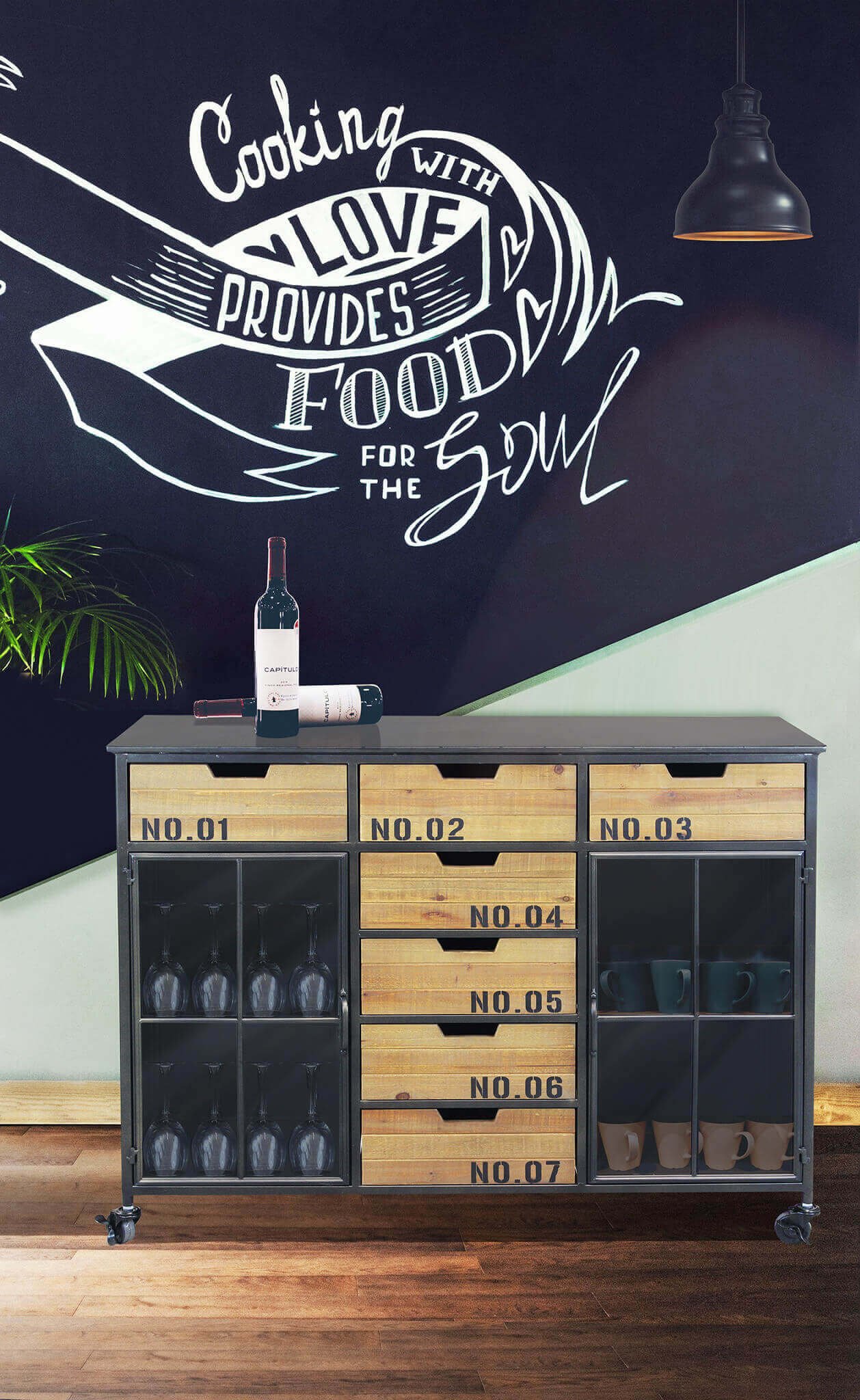La Madia Industrial in Acciaio Legno cm 98,5×38,5×84 – DORAN è la soluzione ideale per chi desidera arredare la propria casa con un tocco deciso e contemporaneo. Questo mobile dal forte carattere industriale combina la solidità dell’acciaio nero con il calore del legno naturale, in un contrasto visivo che cattura subito l’attenzione. I sette cassetti numerati in stile vintage e le due ante a griglia in metallo enfatizzano lo stile urban loft, rendendola perfetta per ambienti come soggiorni, studi o cucine dallo spirito moderno e informale. Le ruote girevoli con freno aggiungono un elemento di grande praticità, facilitando lo spostamento della struttura senza rinunciare alla stabilità. Le dimensioni compatte la rendono versatile anche in spazi contenuti, offrendo nello stesso tempo un’ampia capacità di contenimento. Con la madia DORAN, ogni dettaglio contribuisce a creare un’atmosfera autentica, dinamica e funzionalmente organizzata, valorizzando al meglio ambienti dallo stile industriale con un mobile robusto, originale e ricco di personalità.