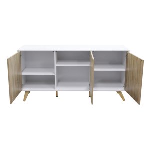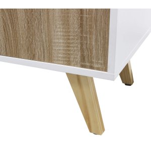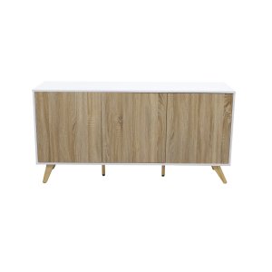 La Madia Moderna con tre ante in Truciolare cm 150×39,5×75 – WILLO è la soluzione perfetta per chi cerca uno stile contemporaneo, praticità e un’estetica minimal senza rinunciare al calore dell’effetto legno. Realizzata in truciolare bilaminato di alta qualità e rifinita in melammina, questa madia unisce una struttura solida con una finitura visiva ricercata: il contrasto armonioso tra le ante in finitura naturale marrone e la struttura bianca dona luminosità e leggerezza agli ambienti domestici. Le tre ante rivelano un ampio spazio contenitivo con ripiani interni, ideale per organizzare stoviglie, biancheria da tavola o accessori per la zona living. Lo stile moderno e lineare, insieme ai piedini obliqui in tinta legno, ne fanno un complemento d’arredo perfetto per soggiorni dallo stile scandinavo, nordico o contemporaneo. La compattezza delle dimensioni, 150 cm di larghezza per 75 cm di altezza, la rende adatta anche a spazi contenuti, massimizzando funzionalità e design. La madia WILLO esprime al meglio il suo valore in un living curato, una sala da pranzo luminosa o un ingresso sofisticato, dove eleganza e praticità si fondono in perfetto equilibrio.