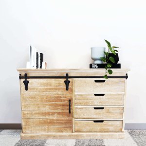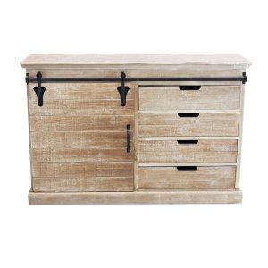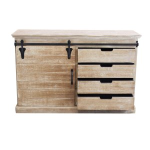 La Madia per soggiorno Industrial in Legno Metallo cm 124x43x81,5 – JIM è il complemento d’arredo ideale per chi desidera unire funzionalità e carattere in un unico pezzo dal forte impatto estetico. Caratterizzata da un delizioso equilibrio tra il calore del legno naturale e la solidità dell’acciaio nero, questa credenza esprime tutta l’essenza dello stile industriale con un’eleganza essenziale. Le dimensioni compatte la rendono perfetta per soggiorni, open space o ambienti living moderni, mentre il sistema di scorrimento a binario in metallo nero richiama suggestioni vintage di ispirazione loft. Gli interni spaziosi, organizzati in vani con ripiani, offrono una pratica soluzione contenitiva per oggetti, stoviglie o accessori, mantenendo l’ambiente ordinato con stile. L’effetto vissuto delle superfici in legno enfatizza la matericità auténtica del mobile, trasmettendo una sensazione di accoglienza e autenticità artigianale. La madia JIM trova la sua massima espressione in contesti contemporanei o rustici, diventando un punto focale ricco di personalità nella zona giorno.