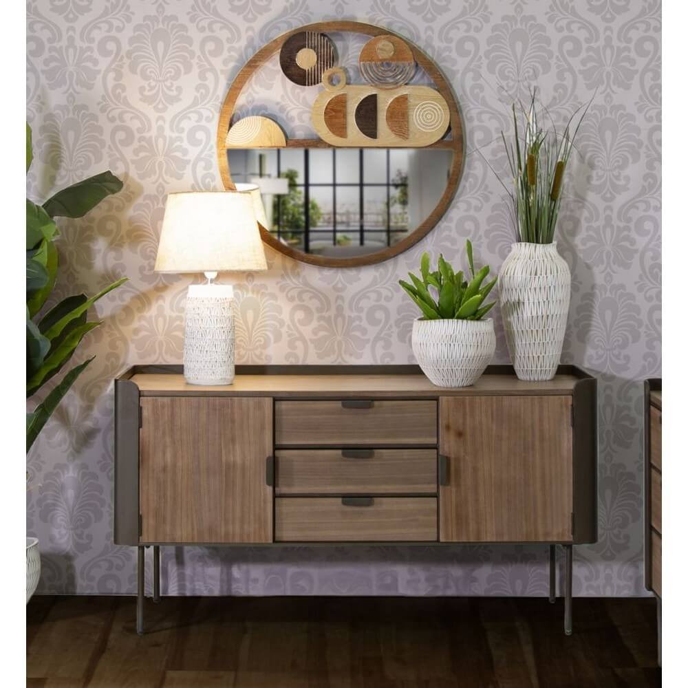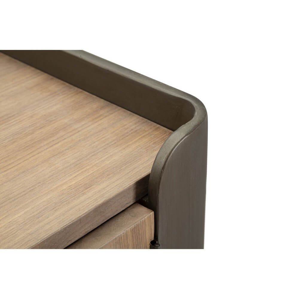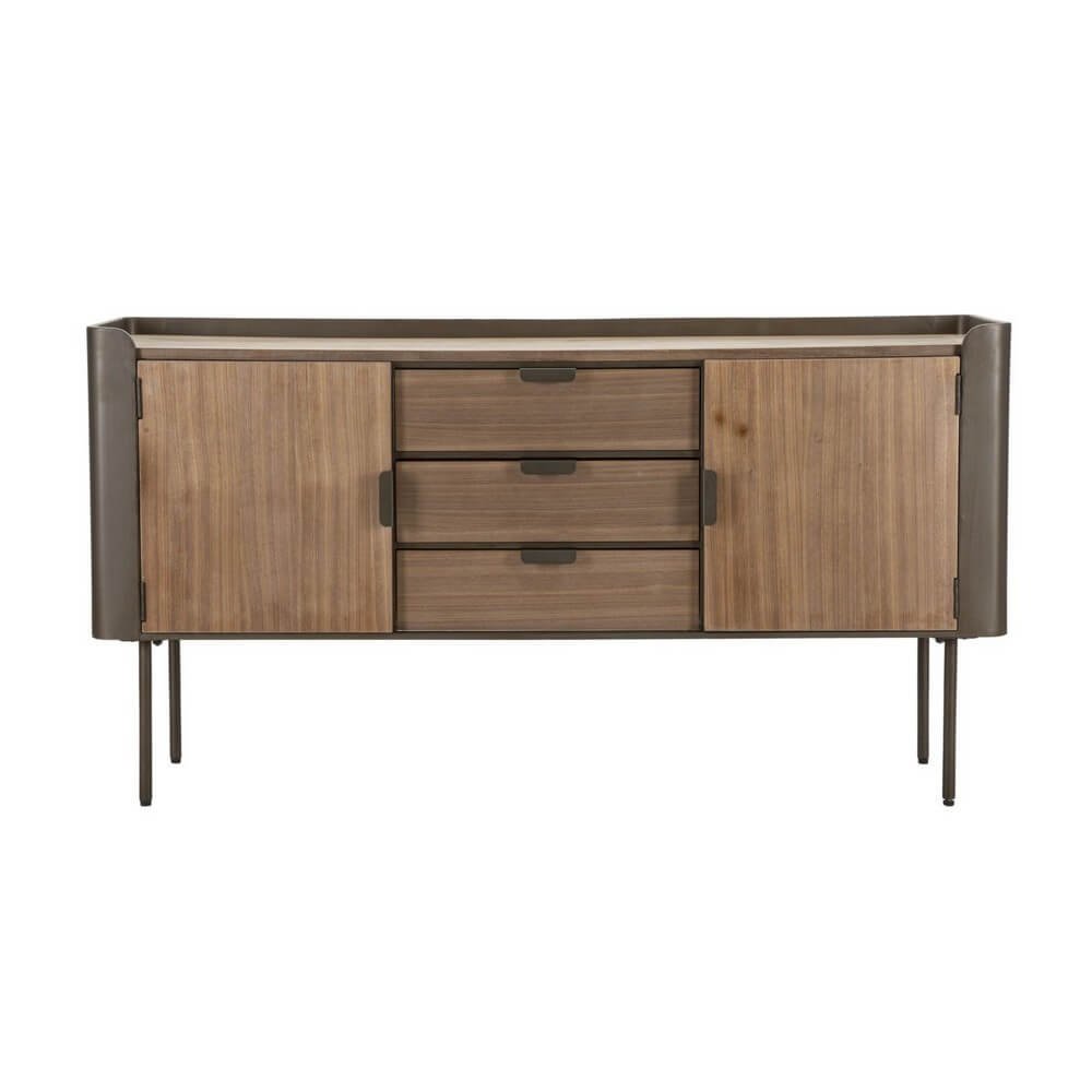Mobile in metallo e legno con 3 cassetti e 2 ante. Il particolare design dalle linee semplici ma accattivanti rende l’articolo perfetto per ogni tipologia di arredo. Gambe da assemblare.