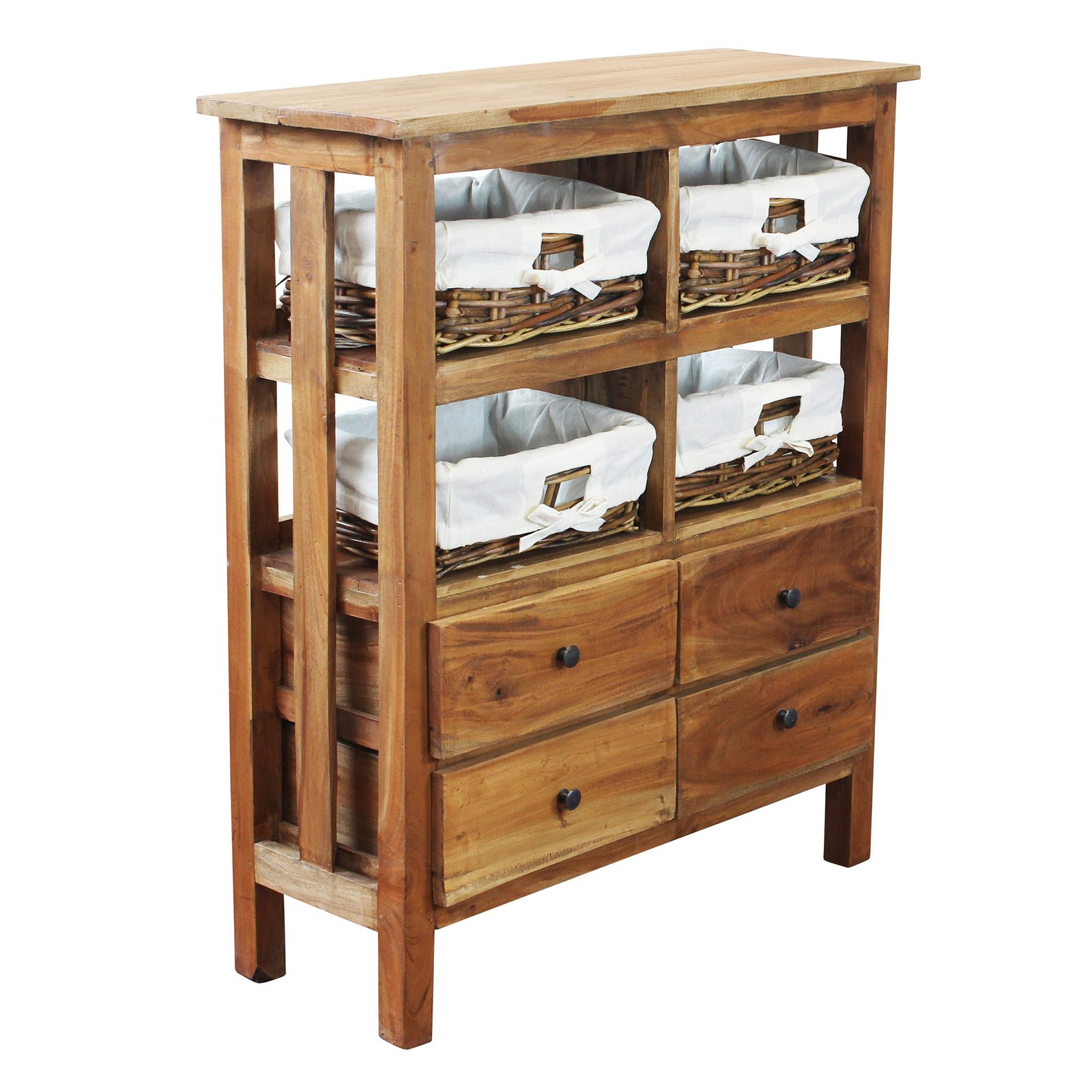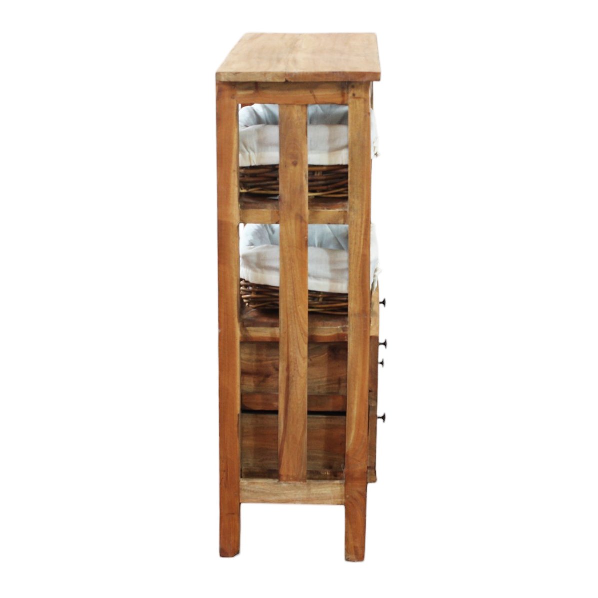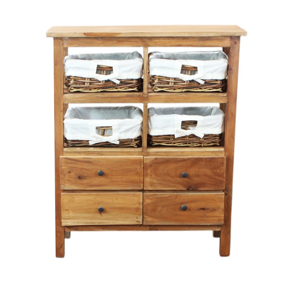Il Mobile in legno 4 cassetti 4 ripiani con ceste – ADARA è una credenza dal fascino autentico, perfetta per donare un tocco vintage raffinato a qualsiasi ambiente, sia domestico che professionale, come hotel o strutture ricettive. Realizzato in solido legno naturale, si distingue per l’equilibrata combinazione di funzionalità e stile. Il calore del marrone del legno si unisce armoniosamente al bianco delicato del tessuto che riveste le quattro ceste in vimini, creando un contrasto visivo accattivante e accogliente. I quattro cassetti inferiori, caratterizzati da pomelli neri minimalisti, offrono praticità e capienza, mentre i ripiani aperti ospitano ceste estraibili ideali per contenere oggetti di uso quotidiano mantenendo l’ordine con eleganza. La struttura fissa e robusta ne garantisce durata e stabilità, mentre le linee semplici ma curate ricordano le atmosfere calde e rustiche del passato. Il Mobile ADARA si presta a valorizzare con sobrietà ingressi, camere o zone living, rendendole immediatamente più ospitali e personali. Un arredo che unisce bellezza artigianale e utilità concreta, pensato per chi ama il legno e desidera arricchire lo spazio con un oggetto dallo spirito autentico.