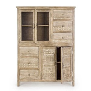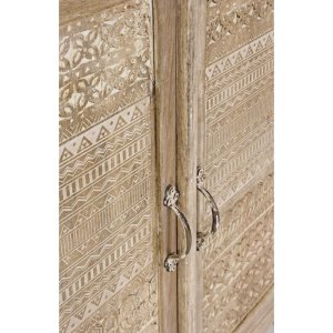 Il Mobile Legno Naturale Rustico da Interno – LENA è una credenza dal fascino autentico che unisce funzionalità e stile in un’unica soluzione d’arredo. Realizzato in pregiato legno di mango, questo mobile vanta lavorazioni artigianali intarsiate a mano che valorizzano ogni superficie con eleganti motivi decorativi, portando un tocco etnico e raffinato in ambienti dallo stile rustico, boho chic o country. La finitura in nitrocellulosa mantiene visibile la bellezza naturale del legno, donando calore e luminosità all’ambiente. Composto da cassetti, ante e uno spazioso vano con mensola interna, offre ampio spazio per riporre oggetti in modo ordinato e discreto, mentre lo schienale e il fondo dei cassetti, in mdf, garantiscono una struttura solida e duratura. Le maniglie e i pomelli in ottone aggiungono un dettaglio prezioso che completa armoniosamente il design. Il Mobile LENA si inserisce perfettamente in soggiorni, cucine o ingressi, regalando personalità e atmosfera accogliente a ogni spazio, ideale per chi ama circondarsi di elementi unici, autentici e ricchi di carattere.