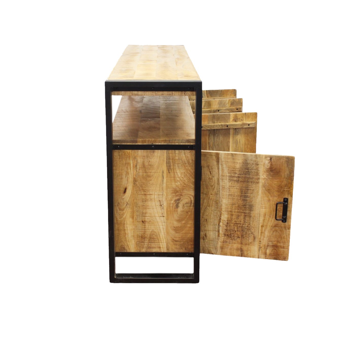 Il Porta TV in legno 4 ante – EUDORA è una soluzione d’arredo dallo stile industrial deciso, ideale per chi cerca un equilibrio tra robustezza e design contemporaneo. Realizzato in pregiato legno di mango, questo mobile fisso conquista per la sua struttura solida e il fascino autentico delle venature naturali, valorizzate da una calda finitura marrone. La presenza della solida intelaiatura in metallo nero conferisce carattere e modernità, rendendolo perfetto per ambienti dallo stile urbano o loft metropolitani. Con dimensioni generose di 180 x 40 x 90 cm e quattro pratiche ante, il mobile EUDORA unisce estetica e funzionalità, offrendo ampio spazio contenitivo per organizzare con ordine accessori multimediali, stoviglie o oggetti decorativi. I dettagli curati, come le maniglie in metallo scuro e i bordi netti, ne accentuano il look industrial, rendendolo una scelta perfetta anche per l’arredo di spazi contract come hotel di design. Il Porta TV in legno 4 ante – EUDORA esprime al meglio il suo valore in contesti dal carattere forte, dove ogni elemento d’arredo racconta una storia di personalità e stile.